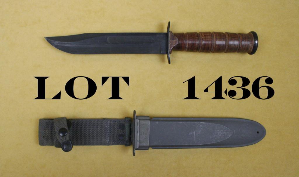 Minty condition USN MK 2 knife and scabbard with woven hanger and securing strap; one of the nicest ones of these we have seen in some time! Est.: $100-$300.