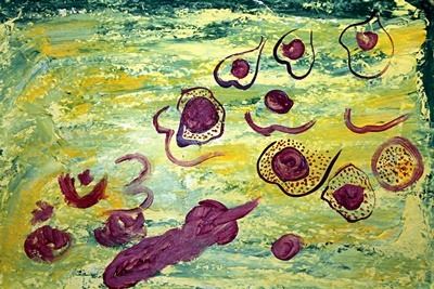 Oil on paper in the manner of Miquel Barcelo - The Faena, bearing the signature. Unframed dimensions approx 19 x 14.
