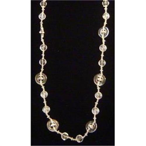 Clear crystal beasds with rhinetone rondelles in each circular bead. Wear long, or loop twice or three times around your neck. Wear with everything, all year long! In pristine original condition.