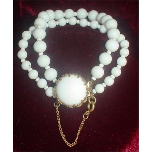 <tr><td>Title:Miriam Haskell Milk Glass Bead Bracelet</td></tr>