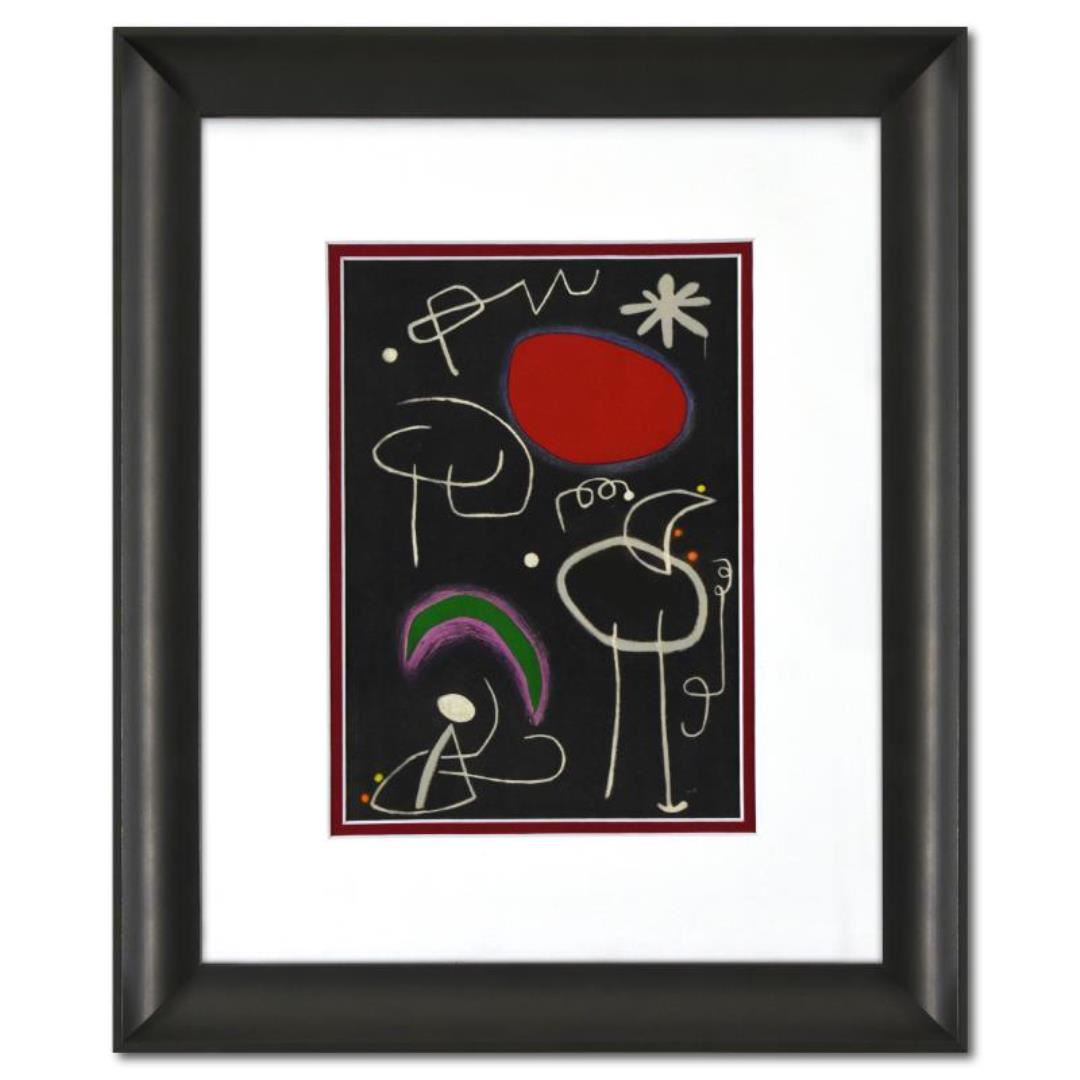 This is a lithograph on paper by Joan Miro (1893-1983). This piece comes framed. Includes Letter of Authenticity. Measures approx. 14" x 17" (frame), 6.5" x 9" (image).