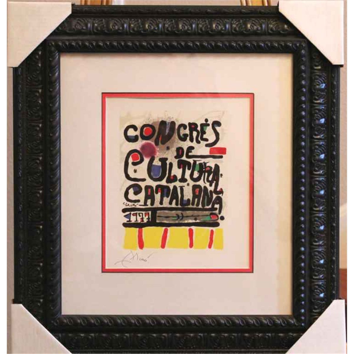 Joan Miro - "Congres De Cultura Catalana" - Hand Signed By The Artist - Book Plate - Professionally Framed And Matted - Mint Condition - Image Size 10.5" X 9" - Framed Size Appx 22.5" X 20.5" - Comes With Certificate Of Authenticity