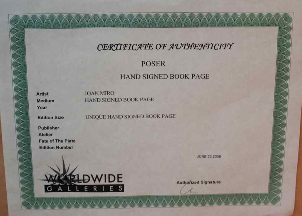 Joan Miro - "Poser" - Hand Signed By The Artist - Book Plate - Professionally Framed And Matted - Mint Condition - Image Size 7" X 7.5" - Framed Size Appx 20.75" X 20.75" - Comes With Certificate Of Authenticity
