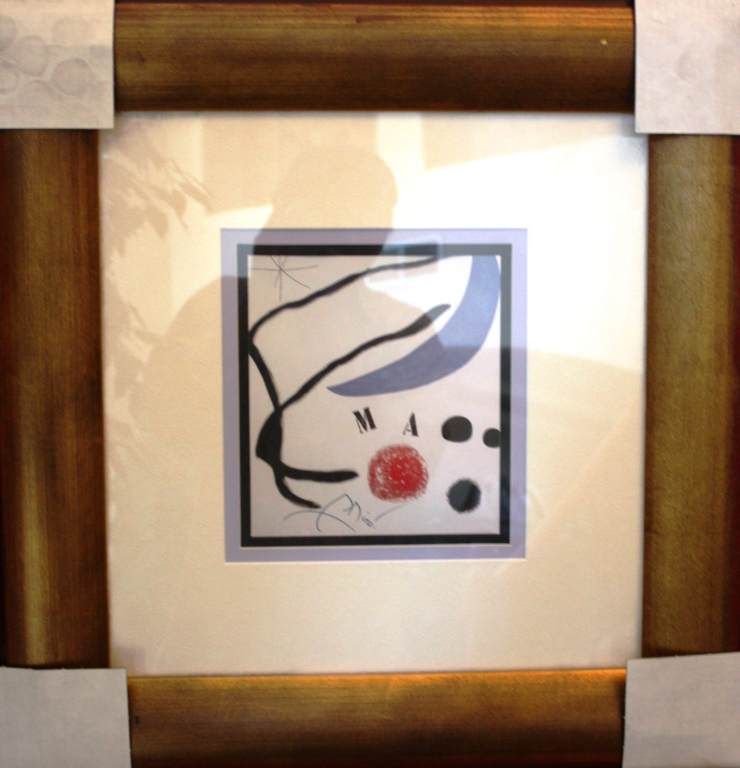 Joan Miro - "Ma" - Hand Signed Lithograph (Book Plate) - Professionally Framed And Matted - Mint Condition - Framed Size Appx 23 X 22 - Comes With Certificate Of Authenticity