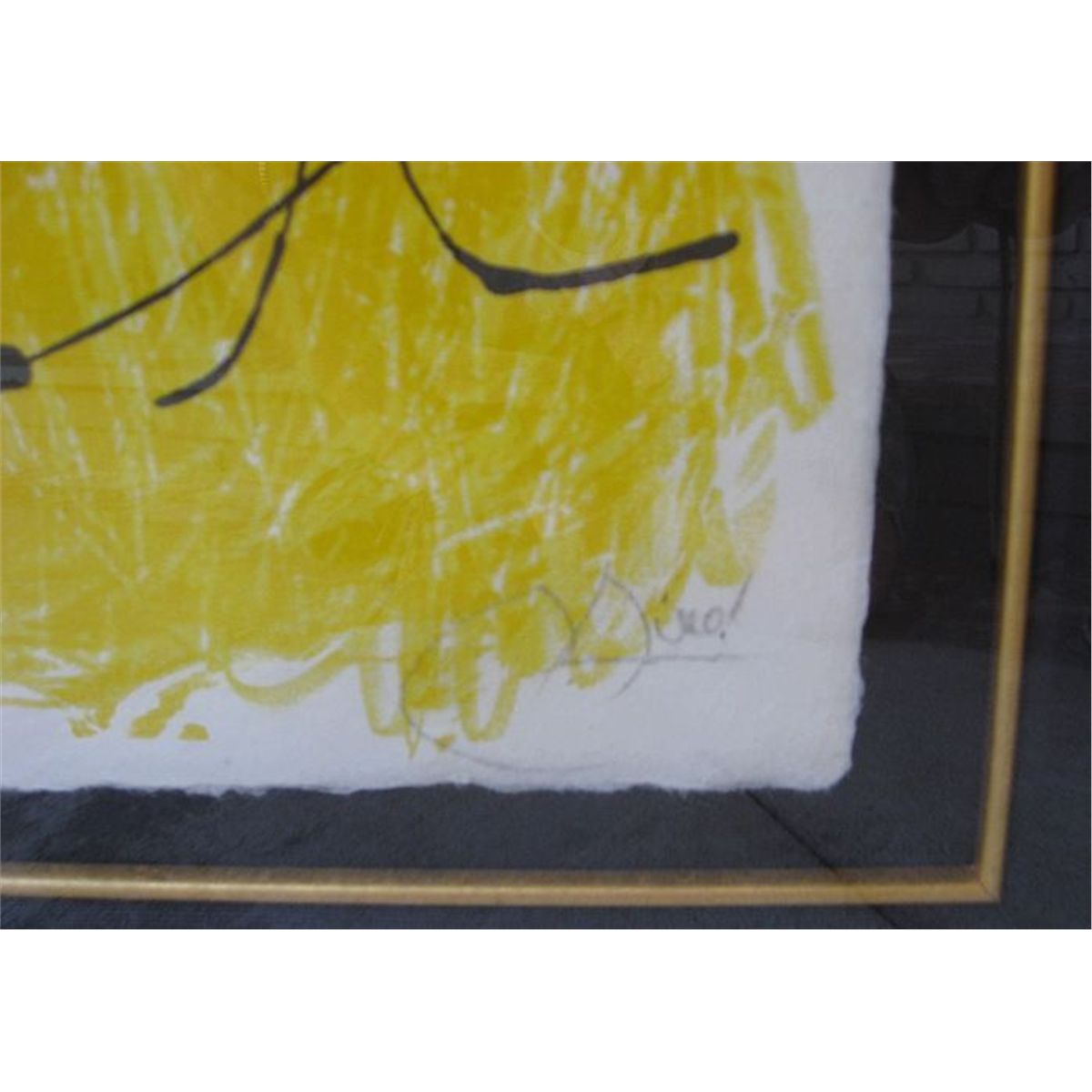 In the final decade of Joan Miro’s life, he devoted himself primarily to the art of printmaking, literally flinging himself headlong into project after project. His retreat from painting was not due to any weakening of his creative abilities or fertile imagination, but rather a focus especially on etching as the chosen means to an end. Miro's large scale aquatints of 1974, such as LE SOMNAMBULE (Sleepwalker), LA FEMME TOUPIE (The Spinning Top Woman), and LE PERMISSIONNAIRE (The Liberty Man) with their magnificent colors and monumental scale encouraged Miro to further these pursuits. This was also a busy period for Robert Dutrou. From 1976 to 1981, Joan Miro created twenty-two compositions in etching, aquatint and carborundum with him, many on a large scale, as well as completing many engravings as illustrations for books. Joan Miro died on December 25, 1983, in Spain.