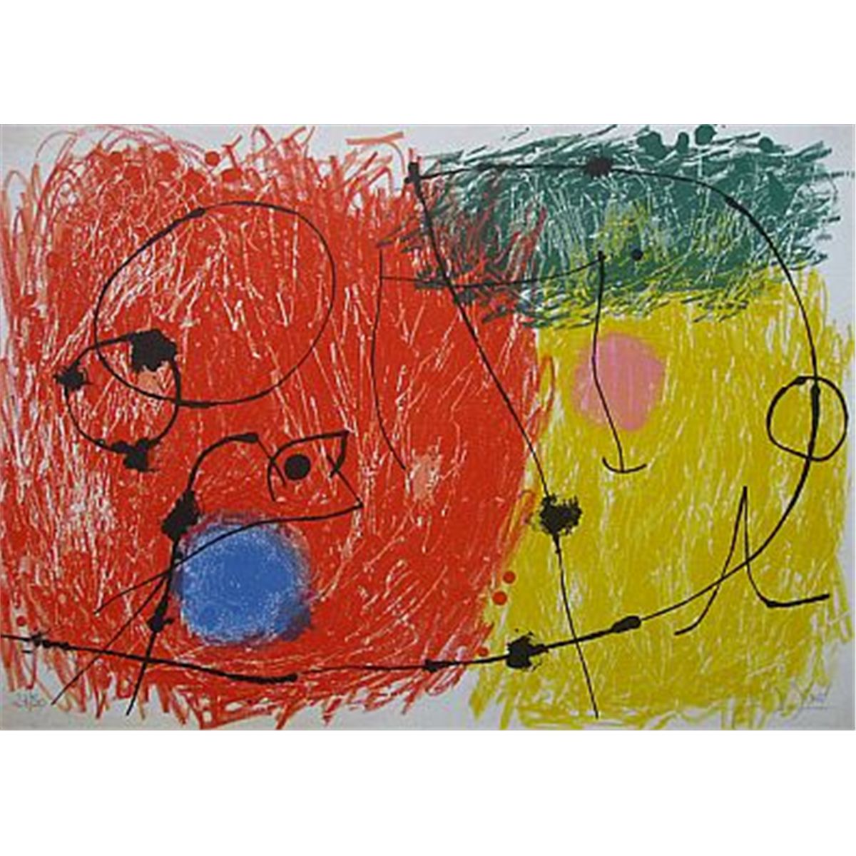 Joan Miro (1893-1983) ranks among the most important artists of the 20th century. An inventive and imaginative painter, sculptor, ceramicist and printmaker, he changed forever the course of modern art. Although he derived his own visual vocabulary from nature, his works are frequently viewed as interesting abstract compositions, an effect that is enhanced by his vivid palette. More than any of his contemporaries, Miro’s iconography forms a bridge between figurative and abstract imagery, and had a profound influence on succeeding generations of artists. Miro’s sparsely ordered lyrical canvases of the 1920’s and 30’s catapulted him to the fore of the Surrealist movement. A classification that persists yet he and his work stand apart as unique. However, the Surrealist precept of automatism (allowing the subconscious to dictate forms) helped to fuel his vivid imagination throughout his career, leading him to spawn sensuous biomorphic imagery with universal appeal. Miro did identify strongly with the Surrealist poets, finding in their verse the inspiration he sought for his own efforts. Their reward was his friendship and collaboration on many artists’ books, to which he would contribute the illustrations for their poetry.