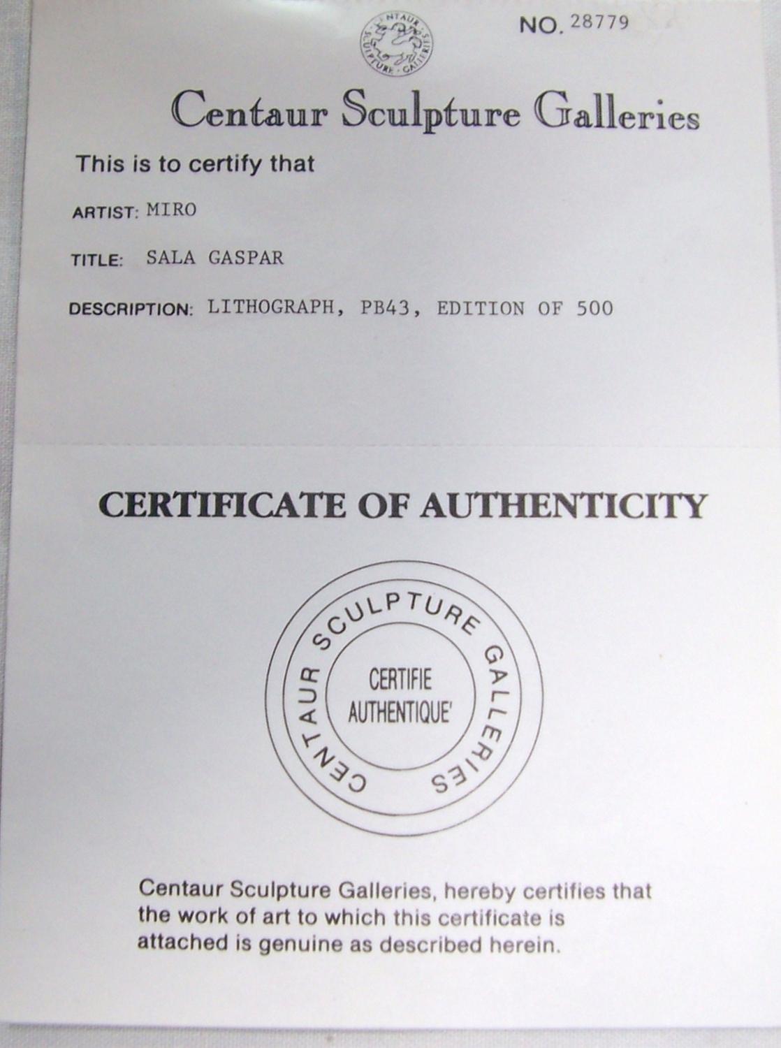 With Certificate of Authenticity from Centaur Galleries,Las Vegas NV. PB43, edition of 500. Retail Value $2,950