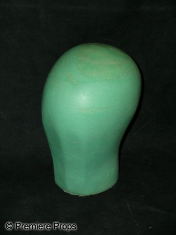 This is the green hard foam wig block used for the many wigs of the Queen (Julia Roberts) from 2012's Mirror Mirror. The block stands approx. 10 1/2" tall.