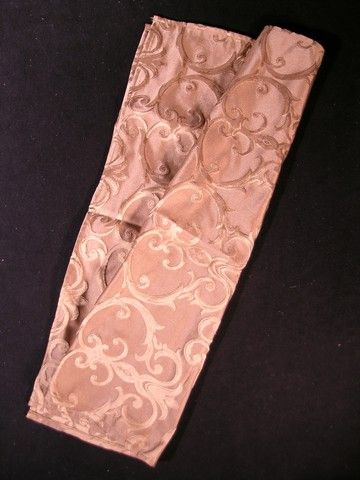 From 2012's 'Mirror Mirror,' this is a golden brocade-style handkerchief. The handkerchief has an embroidered pattern and was used for the food in the saddlebags. (measures approx. 30"x 24").
