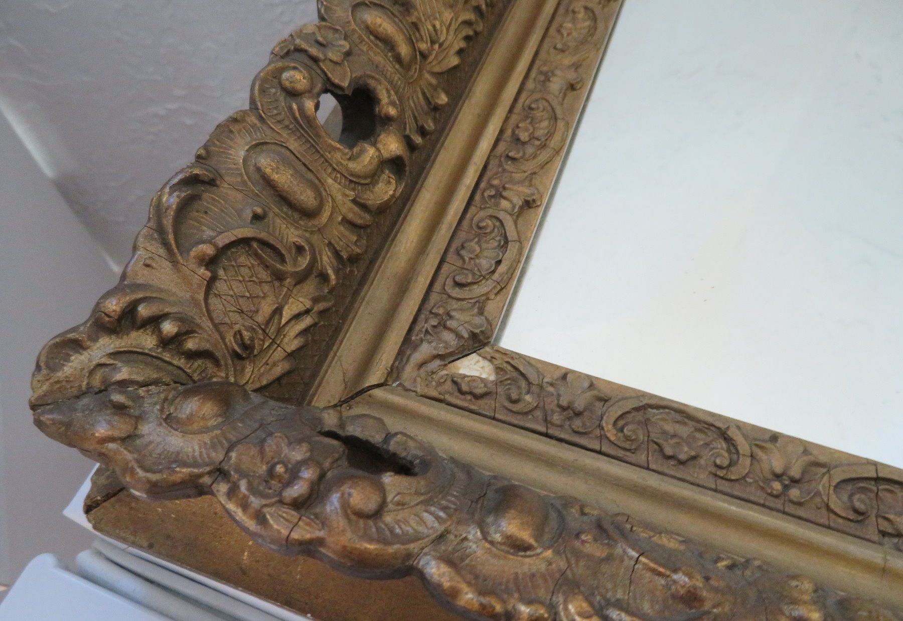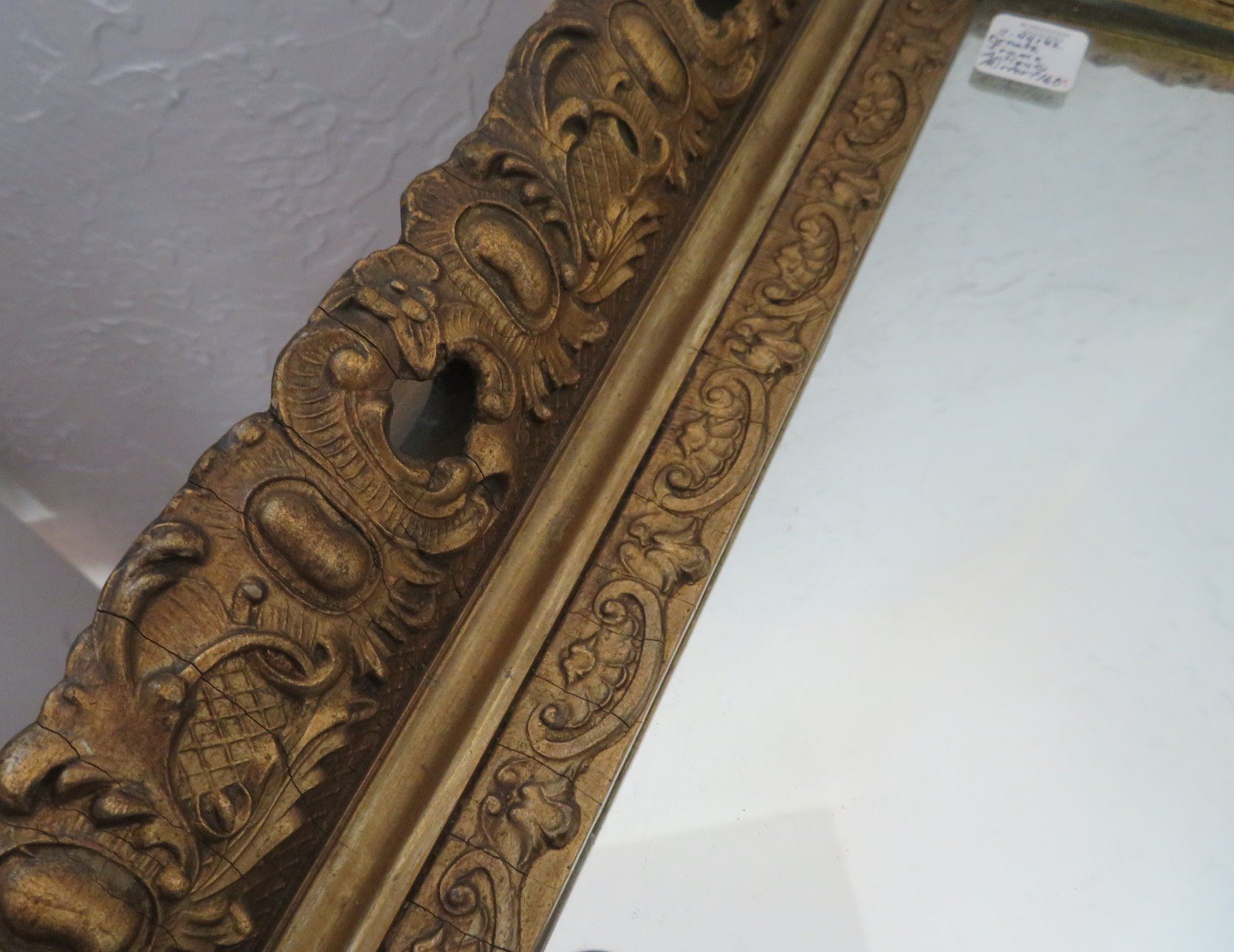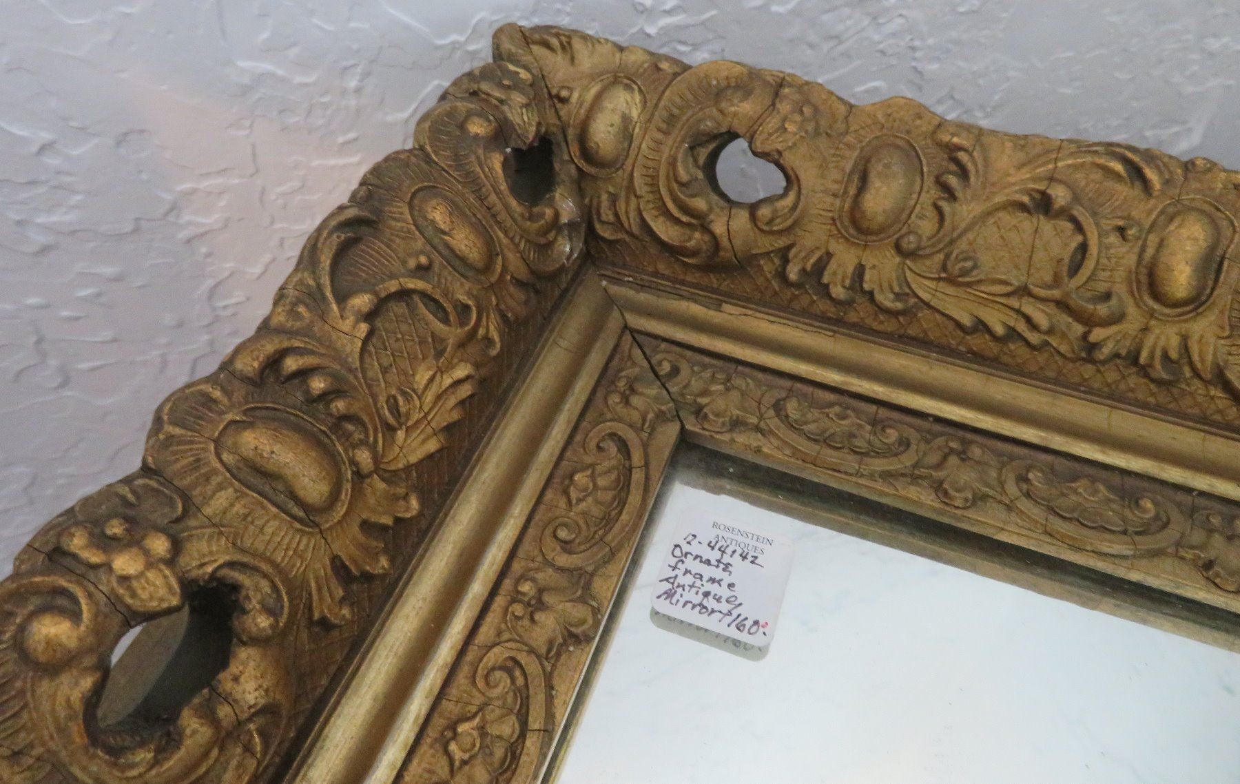 Mirror w/Ornate Frame, antique item. Made of wood and gold-tone paint, the item measures 14 1/2" x 20 1/2". American. Condition: Fair, chips in frame, see images. Shipping: $45.00 USA estimate only, due to size and weight, double-boxed.