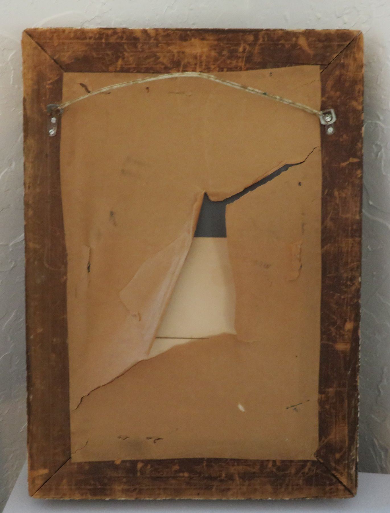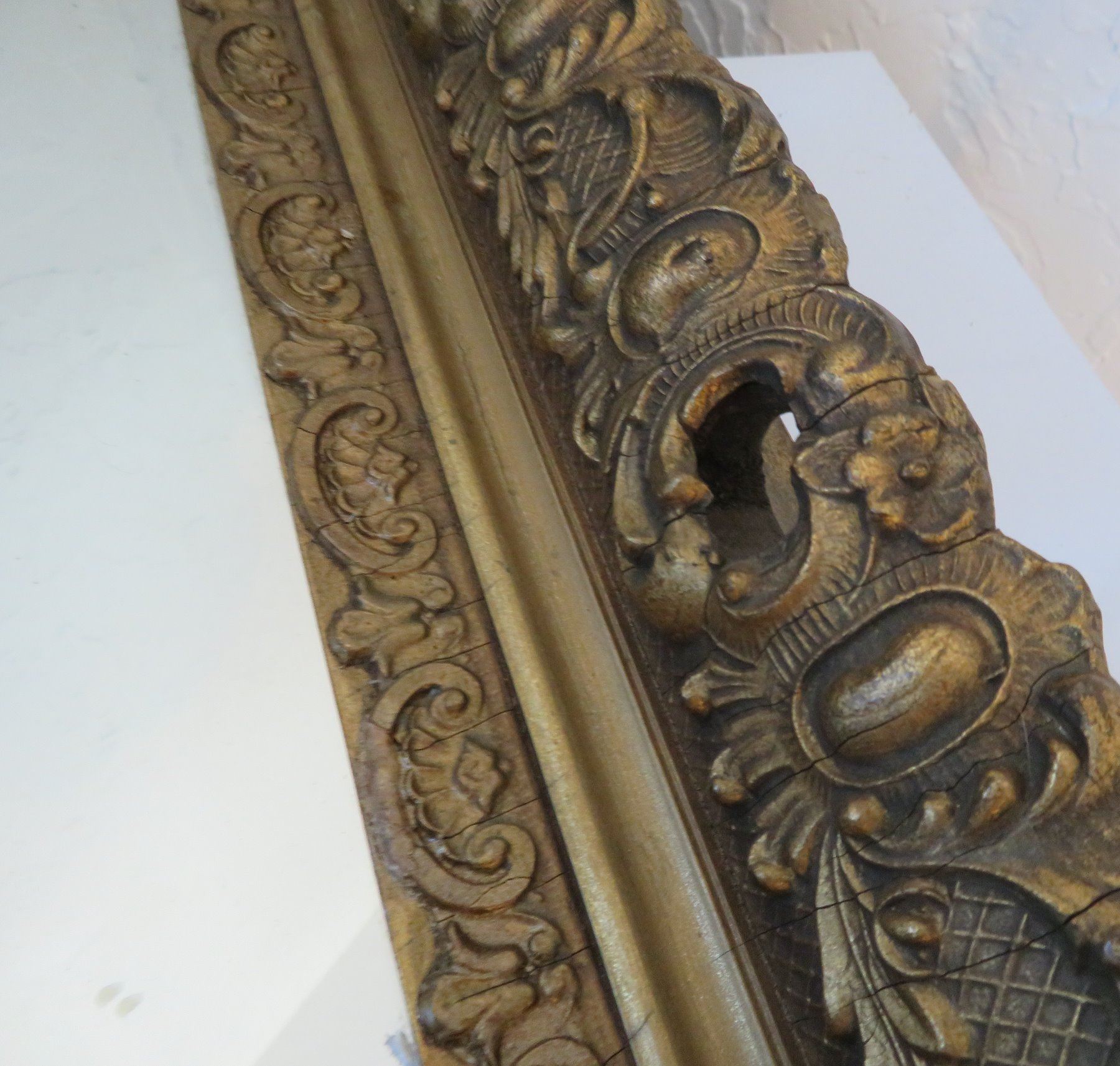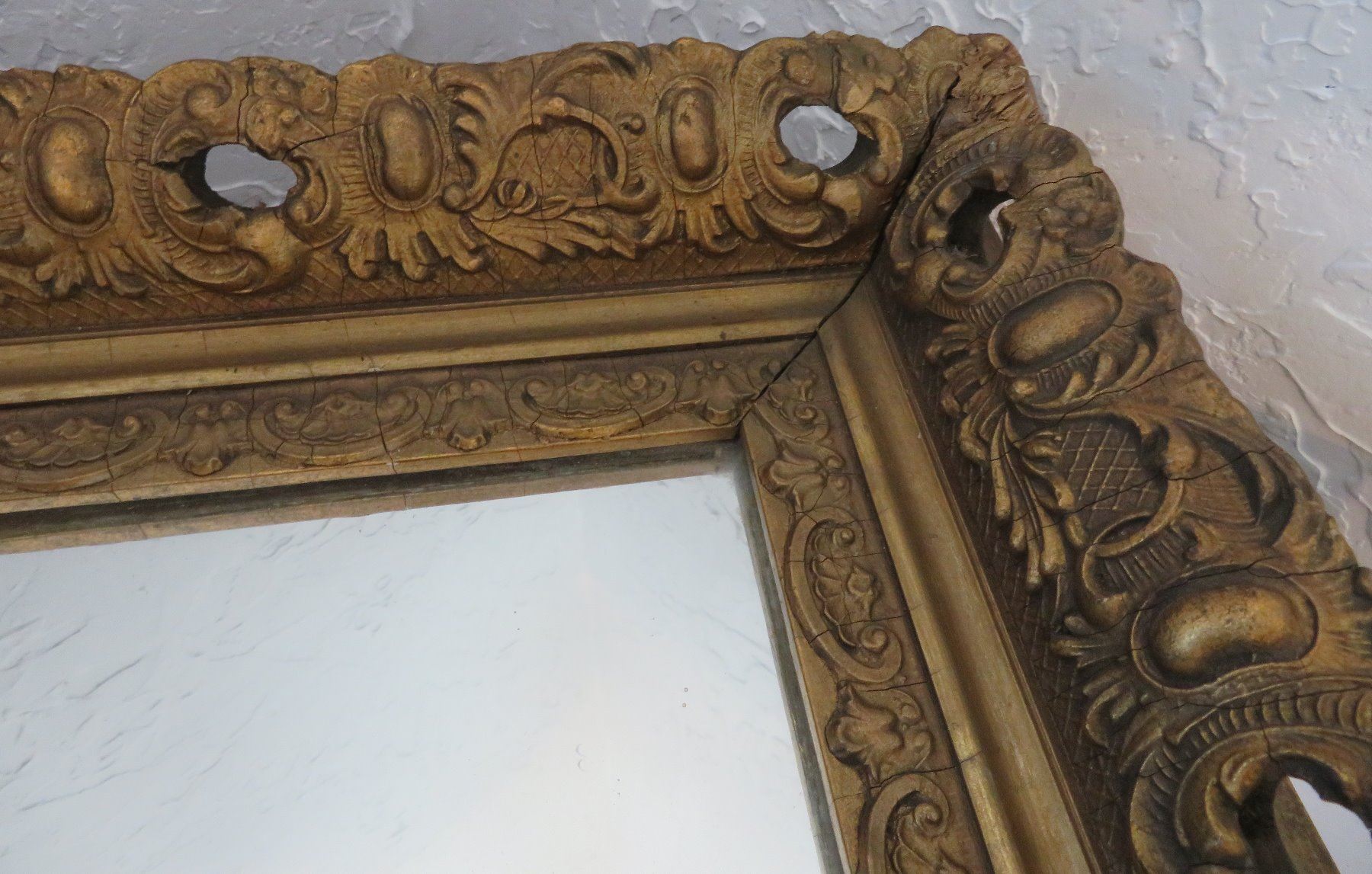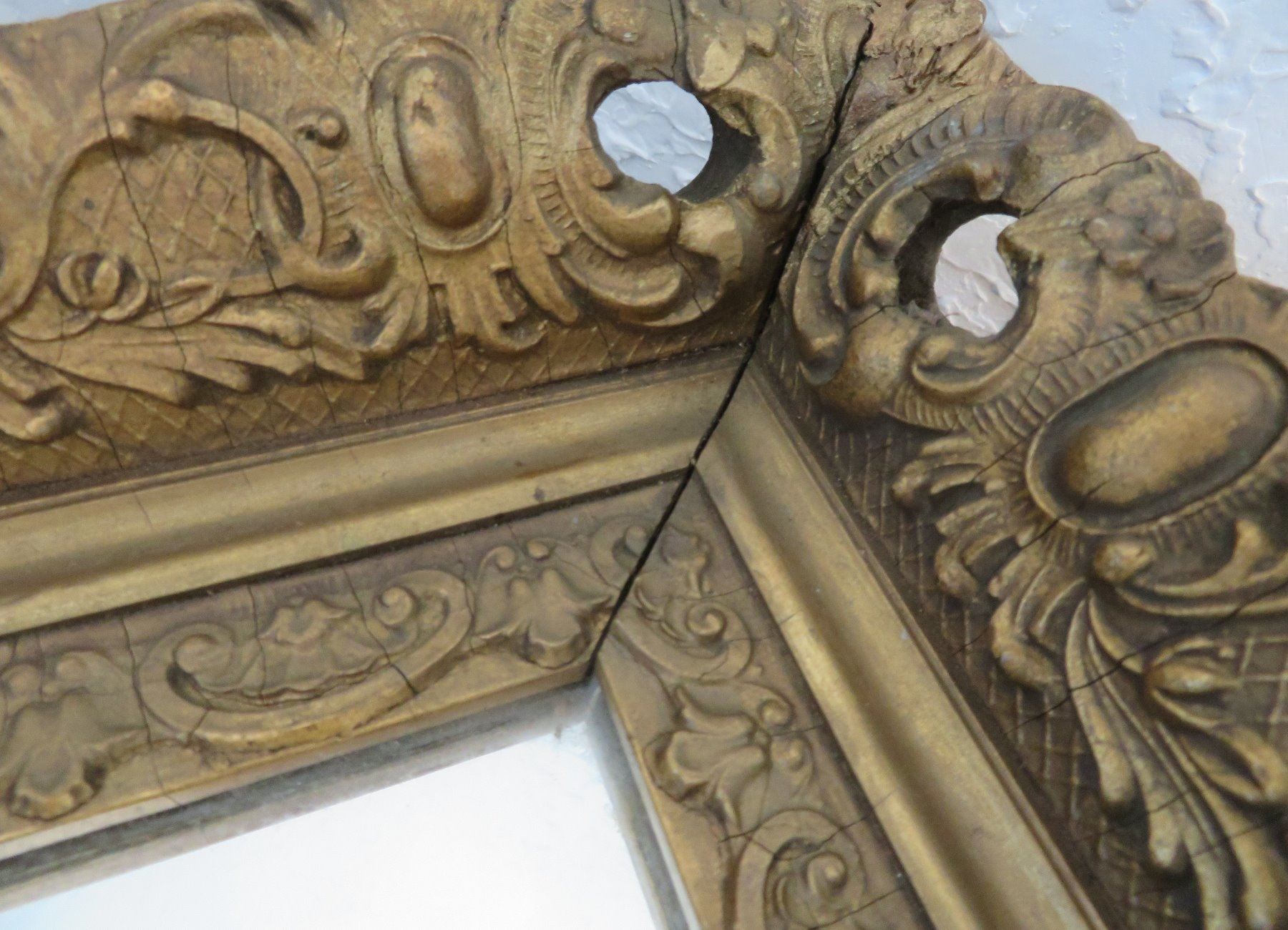 Mirror w/Ornate Frame, antique item. Made of wood and gold-tone paint, the item measures 14 1/2" x 20 1/2". American. Condition: Fair, chips in frame, see images. Shipping: $45.00 USA estimate only, due to size and weight, double-boxed.