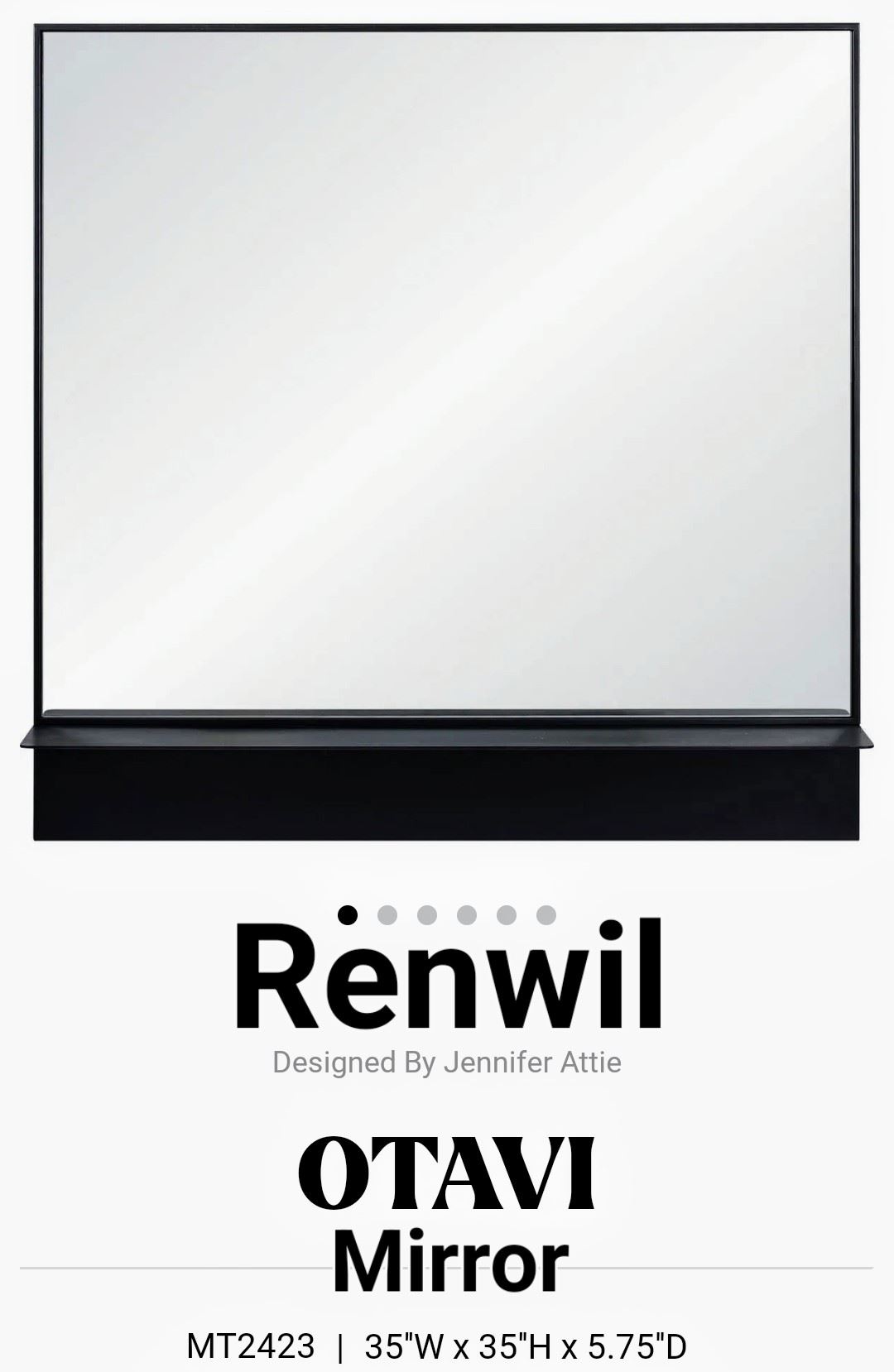 Modern wall-mounted mirror, 35 inches square with a sleek design, perfect for home decor, new.