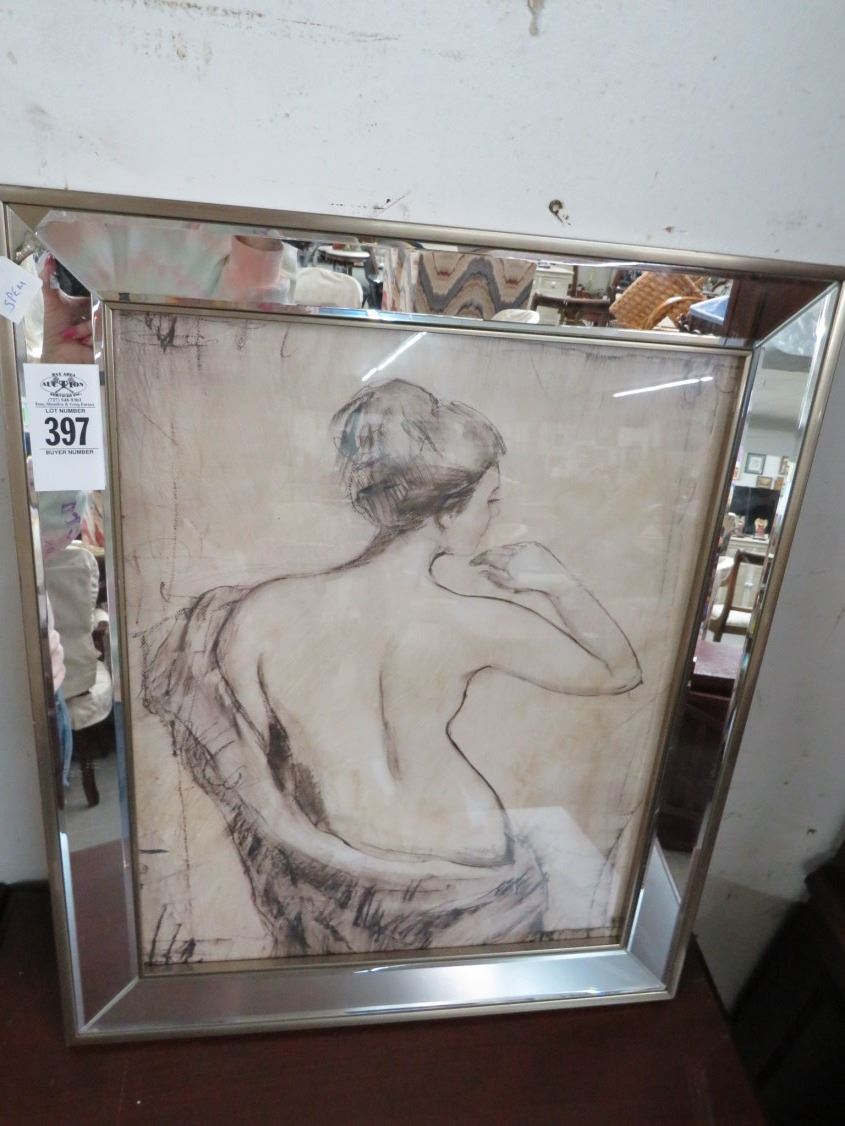 Mirrored Framed Nude Sketch of Woman - 18 x 24