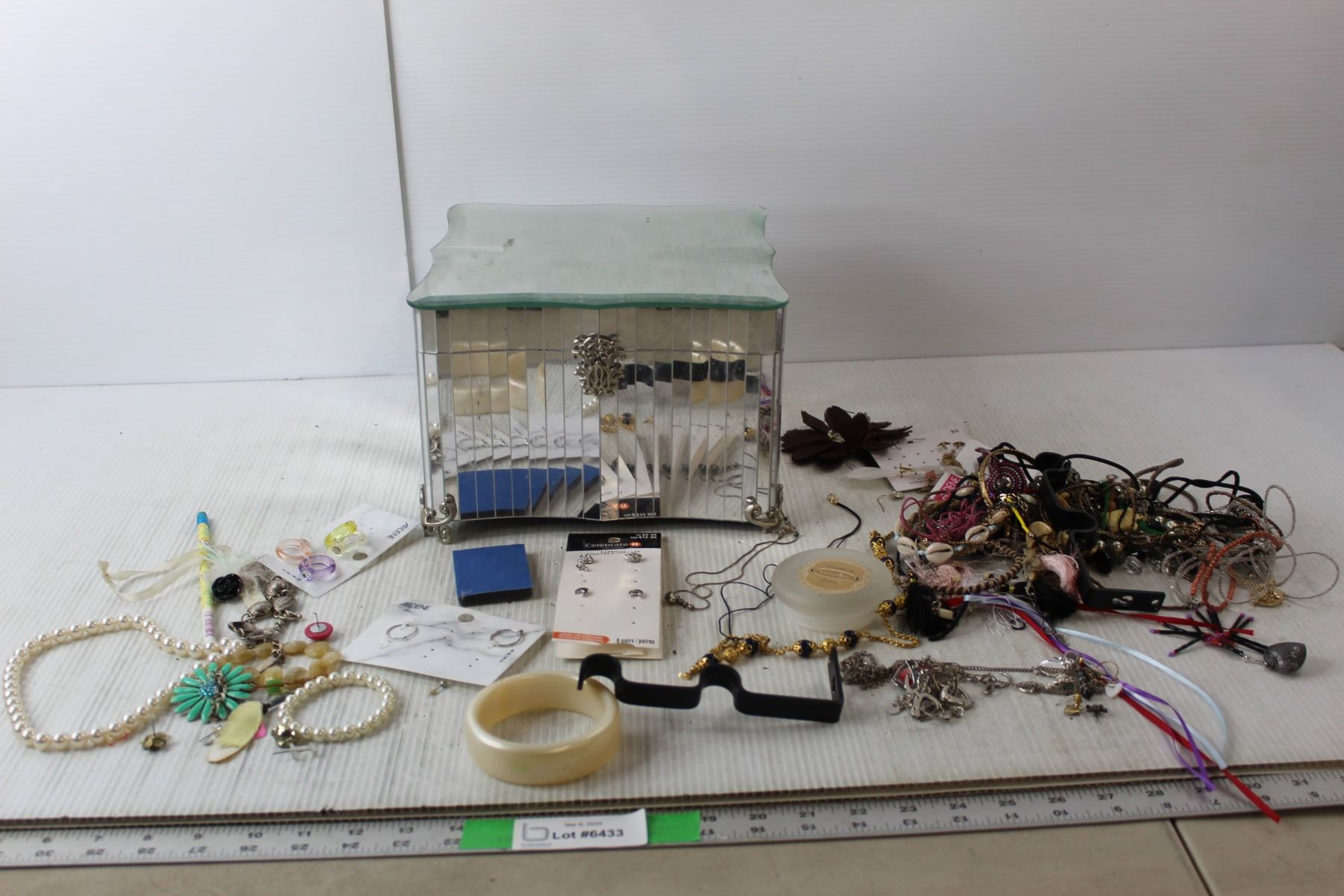 Mirrored Jewellery Box 6.5" Tall with Miscellaneous Jewellery