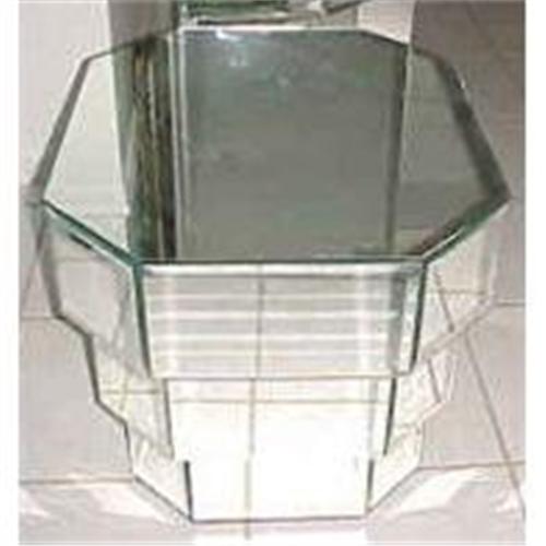 This is a wonderful octagonal mirrored table/stand surrounded with three tiers of beveled mirrored panels. This piece is really stunning!