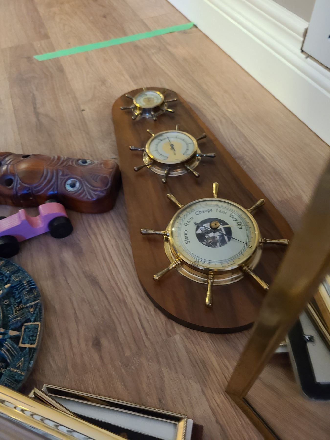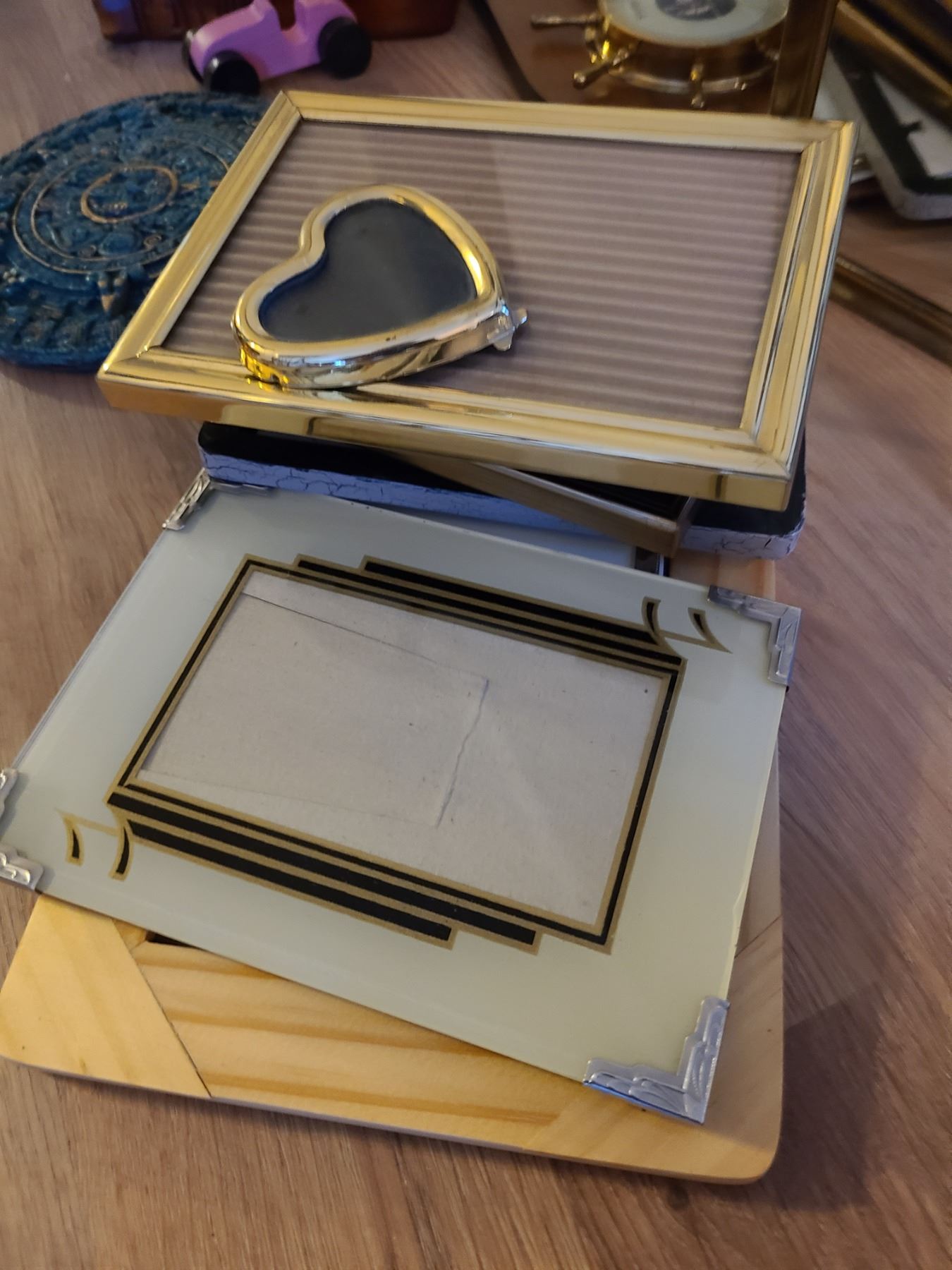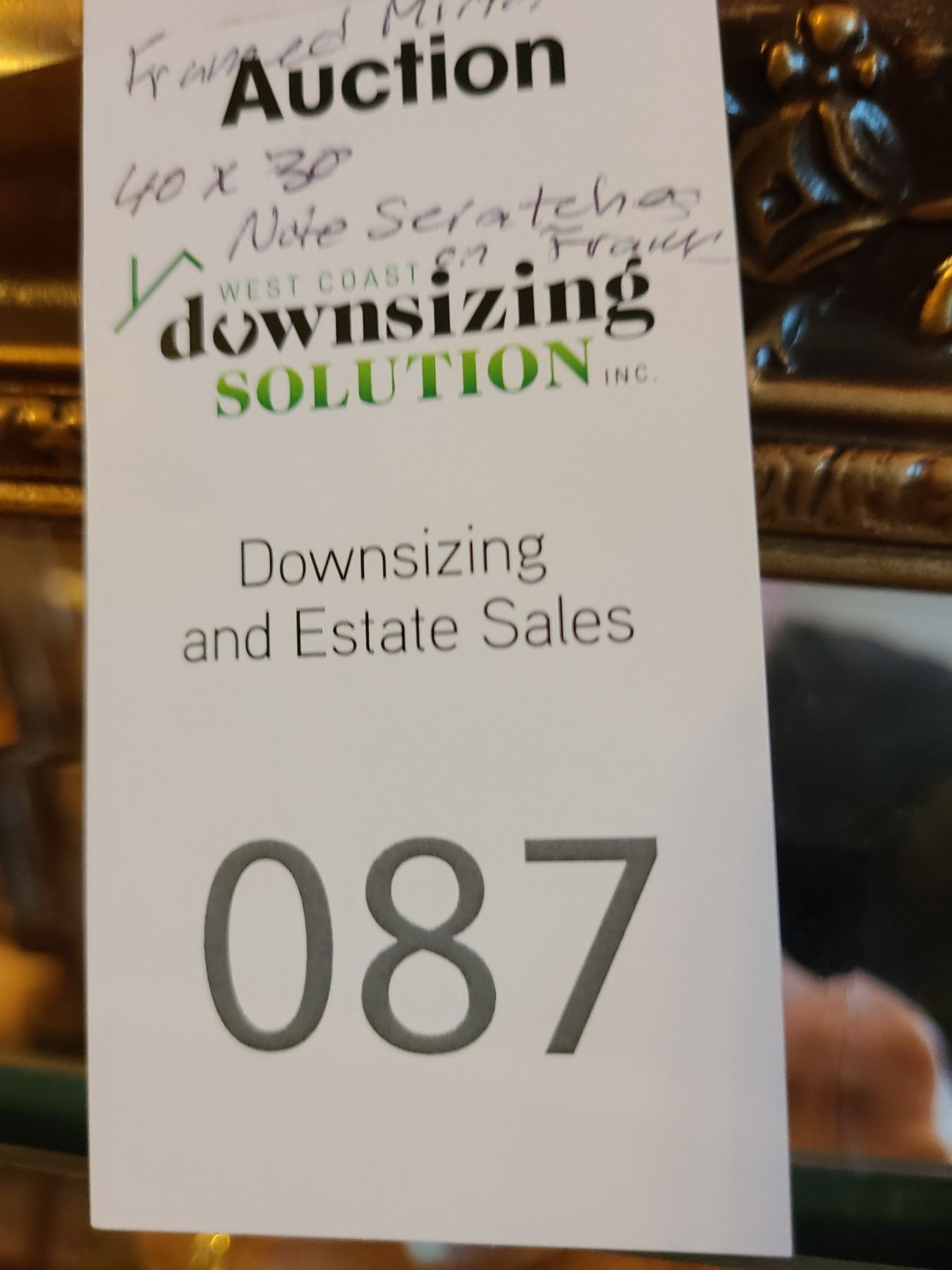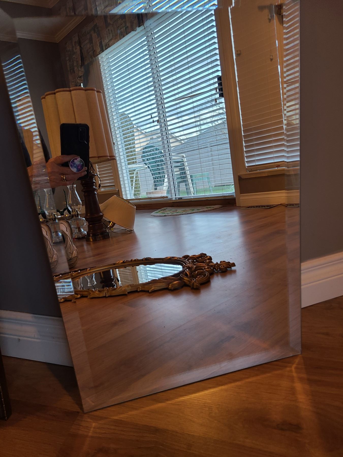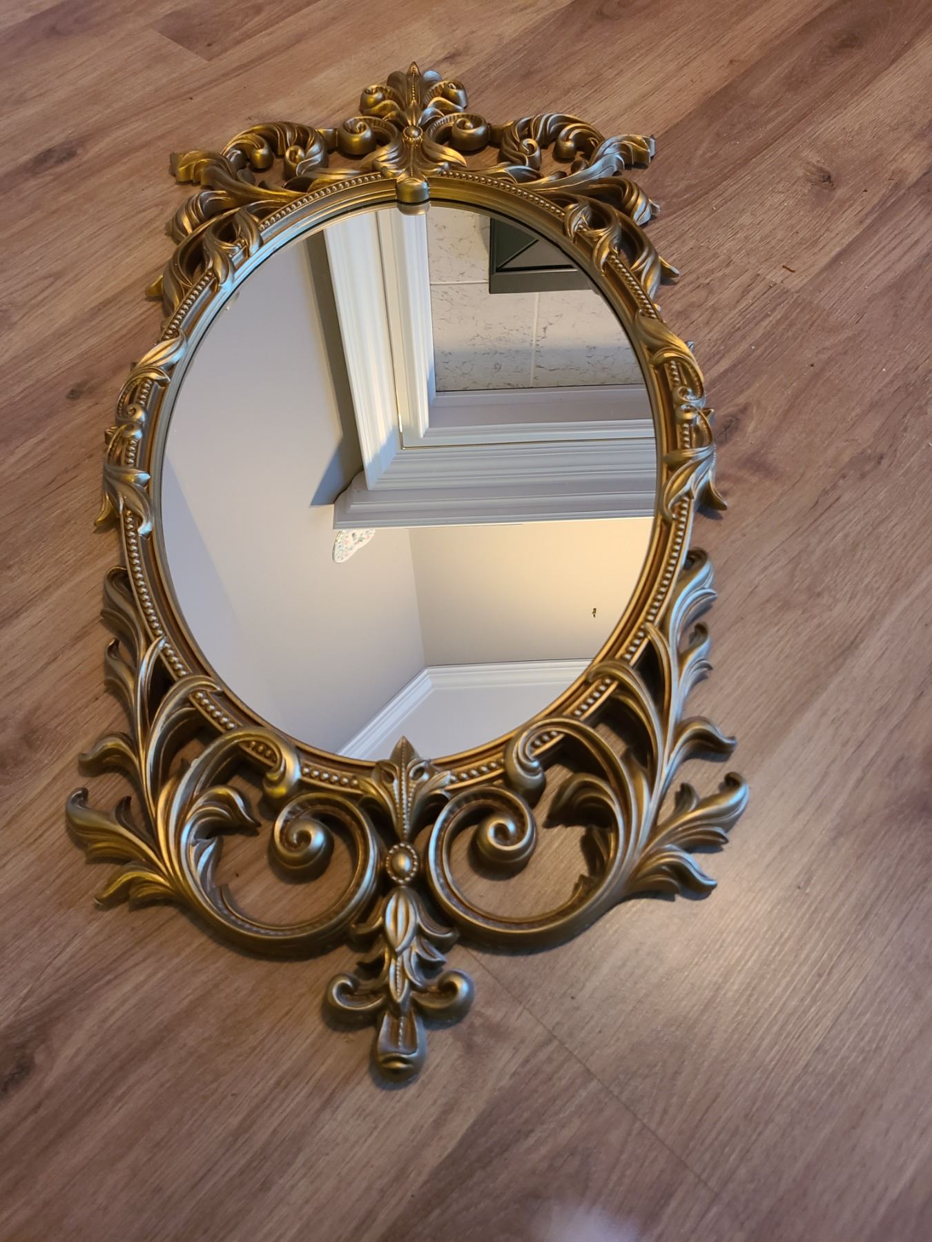 Lot includes large mirror 40x30, frames, round and folding mirrors, and more. Please note scratches on sides. Pickup at 9 am.