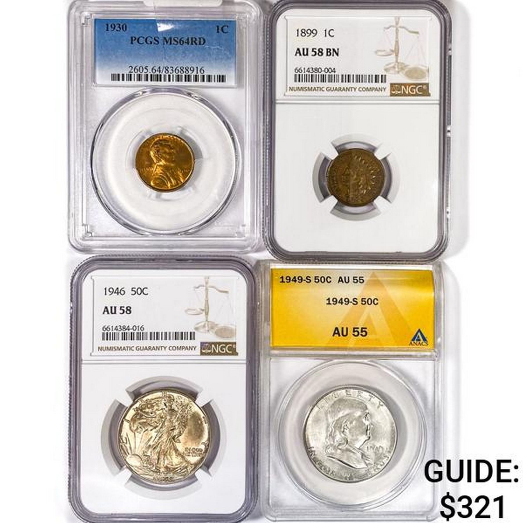 e. Coins sold referencing a third-party grading service are sold “AS IS” without any express or implied warranty, except for a guarantee by GSA that they are genuine. Removal or alteration of the holder, voids all of Bidder’s claims concerning that Product. Certain warranties may be available from the grading services and Bidders are referred to them for further details: Numismatic Guaranty Corporation (NGC), PO Box 4776, Sarasota, FL 34230, www.ngccoin.com/services/writtenguarantee.asp; Professional Coin Grading Services (PCGS), PO Box 9458, Newport Beach, CA 92658, www.pcgs.com/guarantee.html; ANACS, 6555 S. Kenton St., Ste. 303, Englewood, CO 80111; and Independent Coin Grading Co. (ICG), 7901 East Bellview, Ave., Suite 50, Englewood, CO 80111.