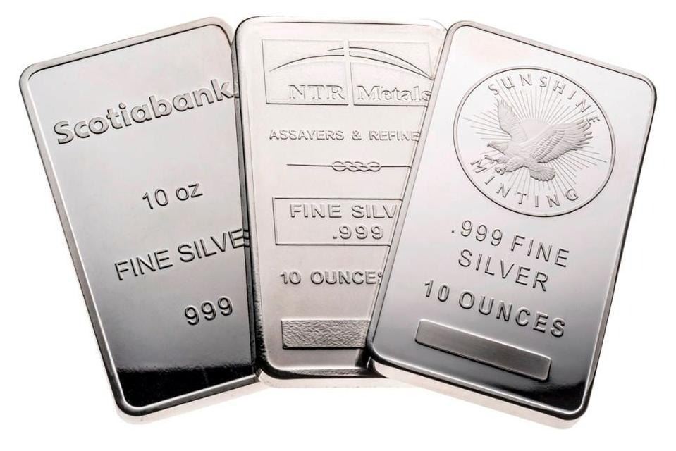 Misc. .999 Fine Silver 10oz bar. The 10oz bar is not limited to what is shown in the photo for this lot. You are bidding on (1) bar, not (3).