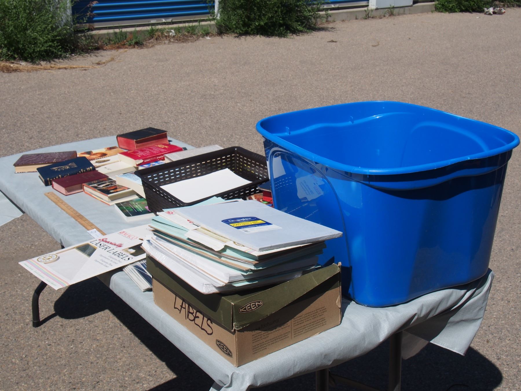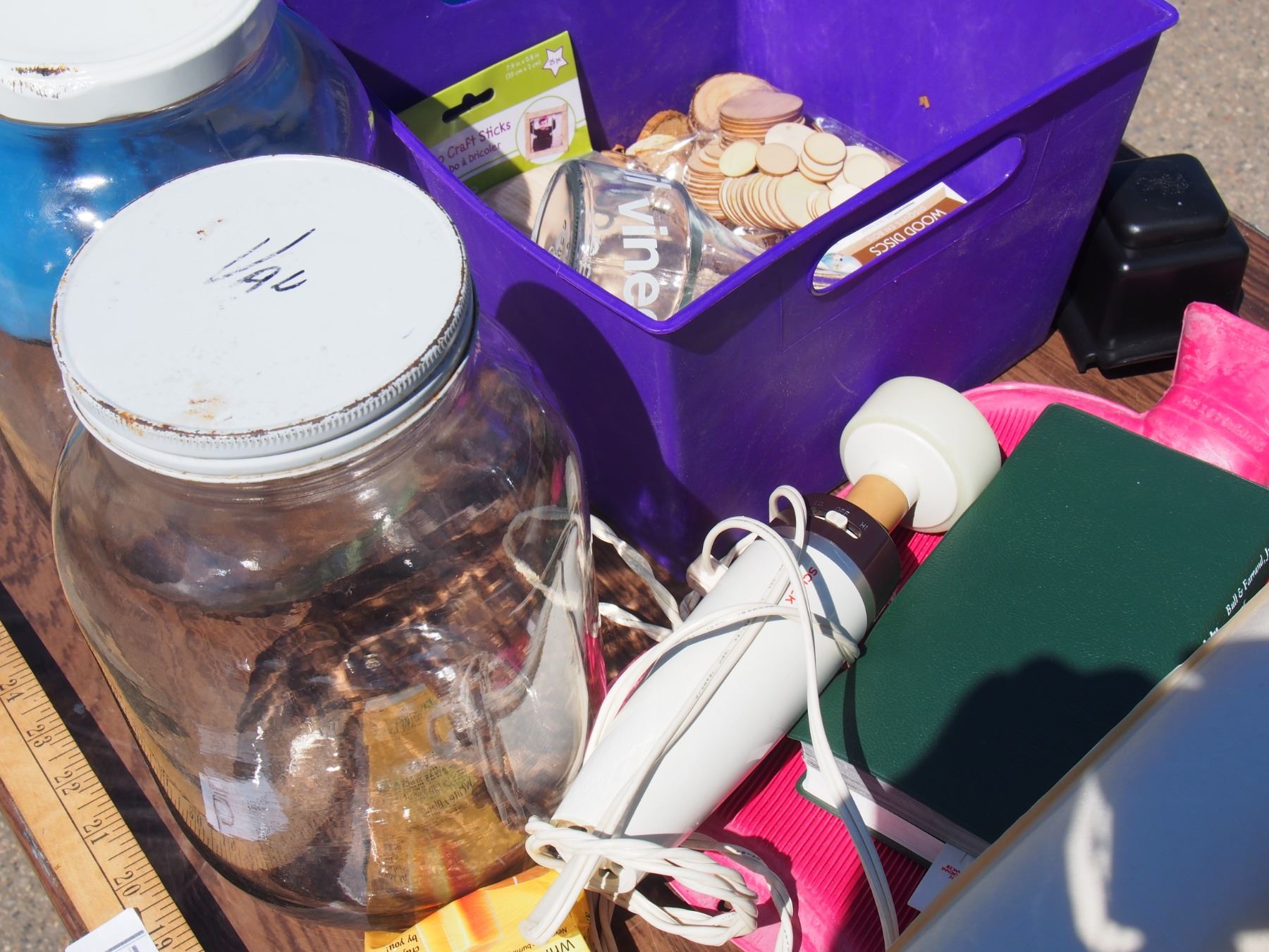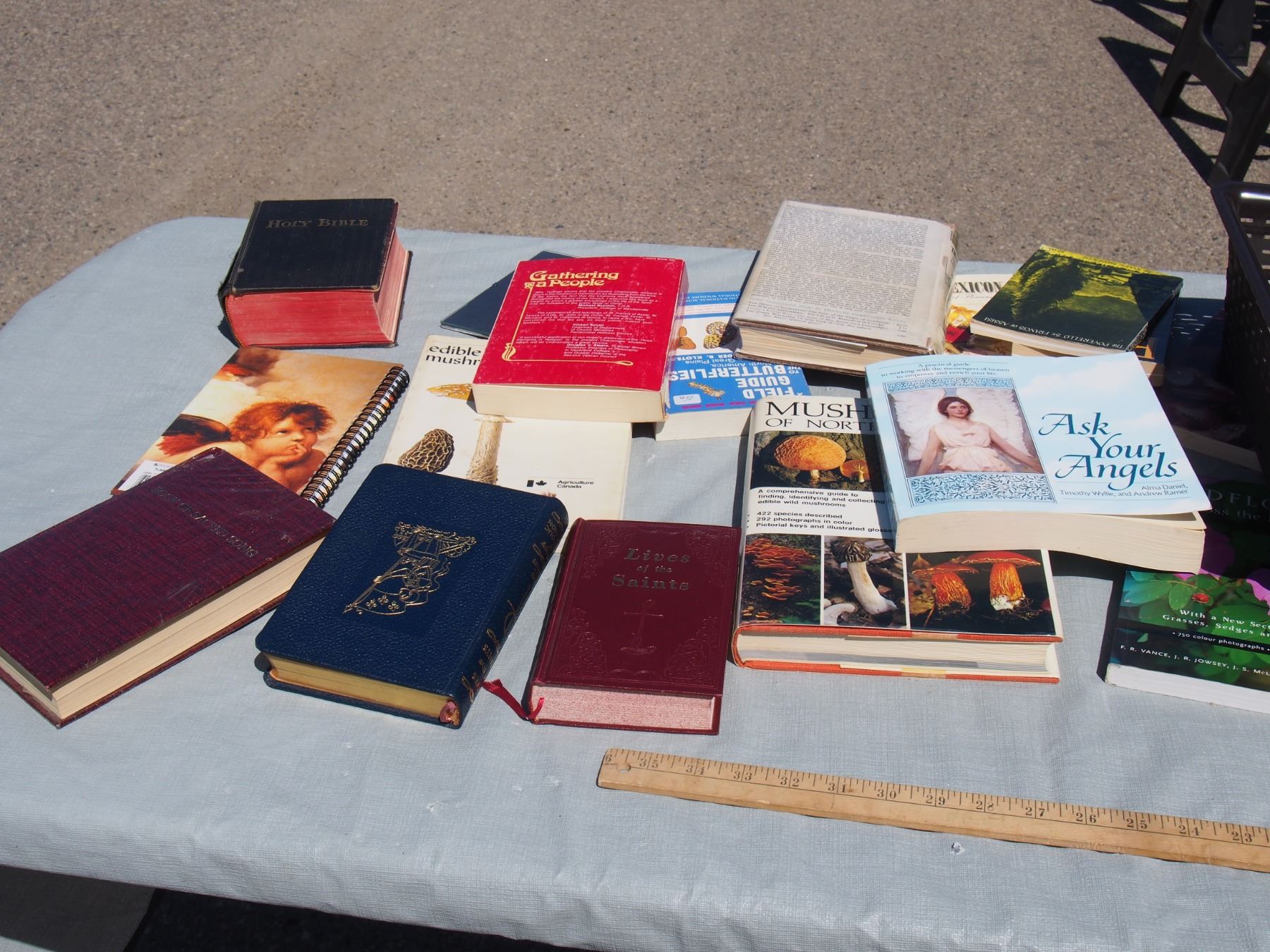 Misc Books, Kitchen Related Items and 2 Plastic Totes