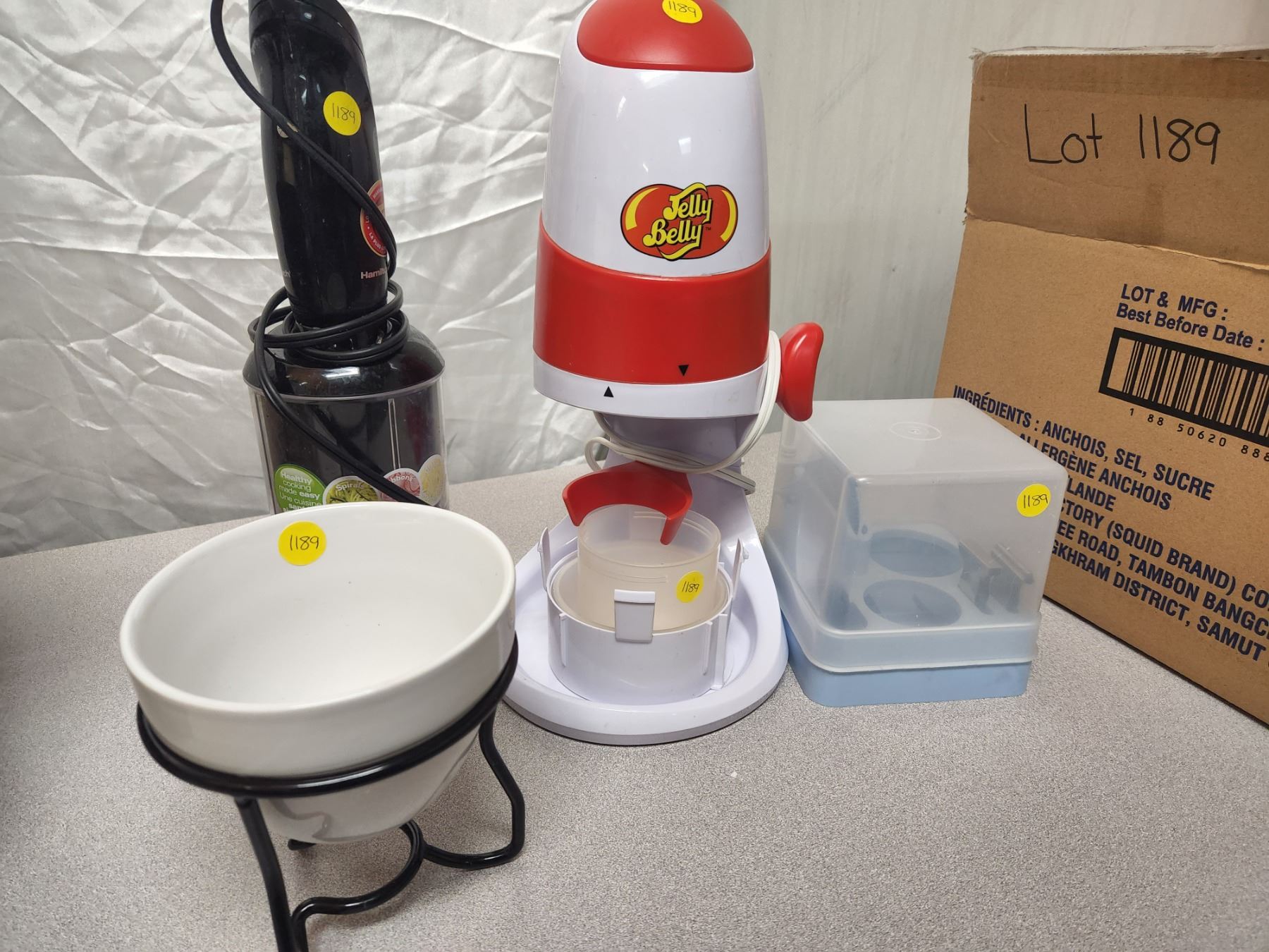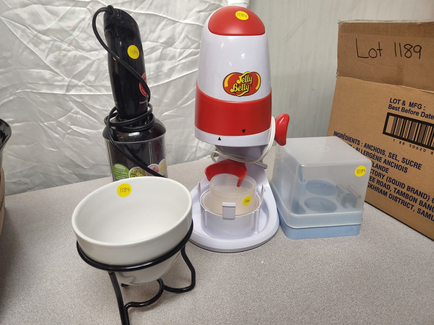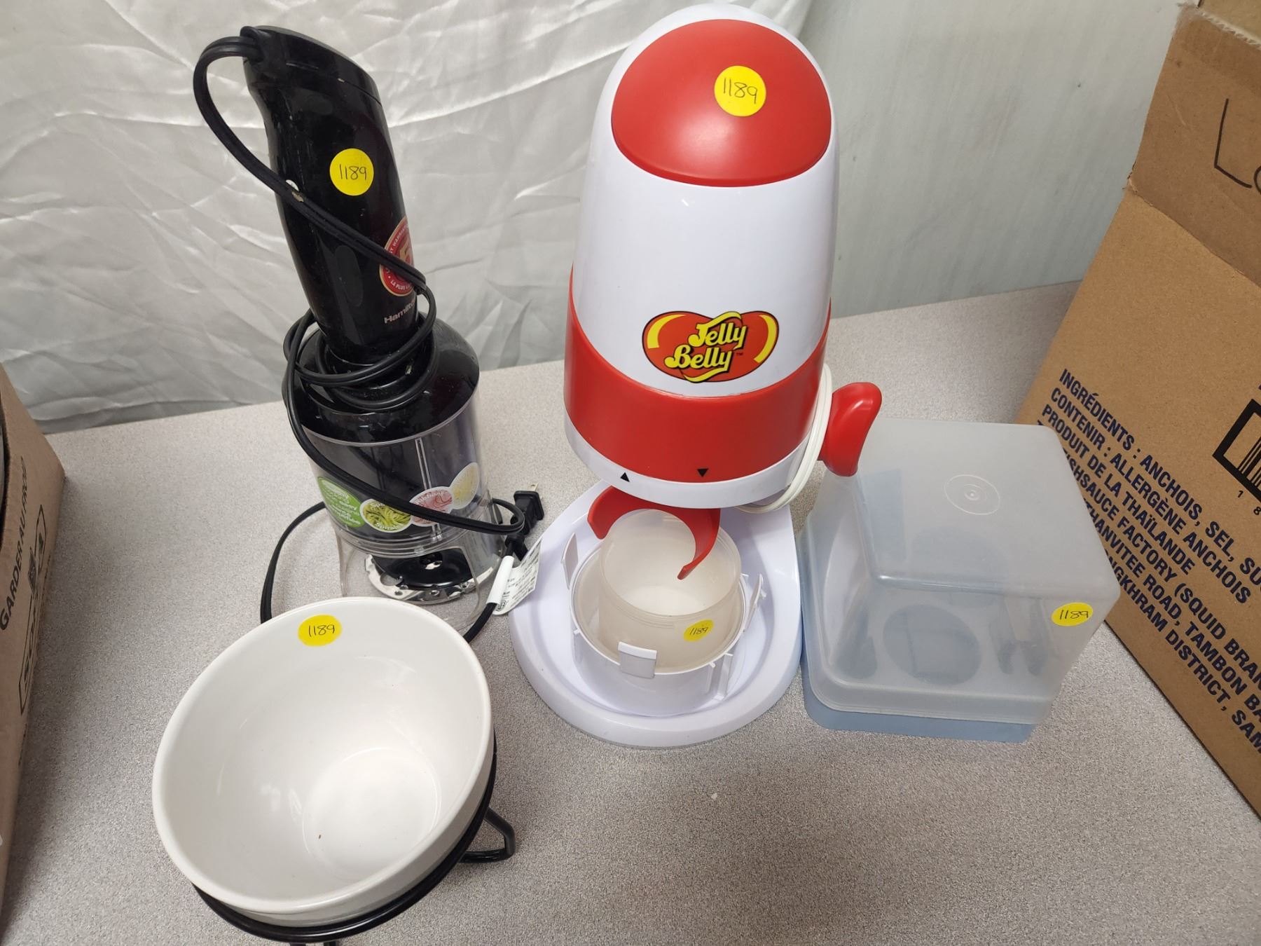 Misc Box of Kitchen Items (Jelly Belly Snowcone Machine, Hamilton Beach Chopper, Pot Holder W/ Pot,