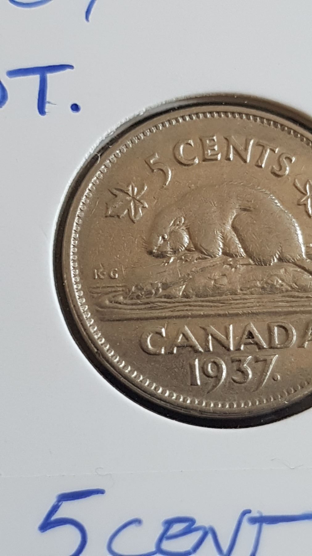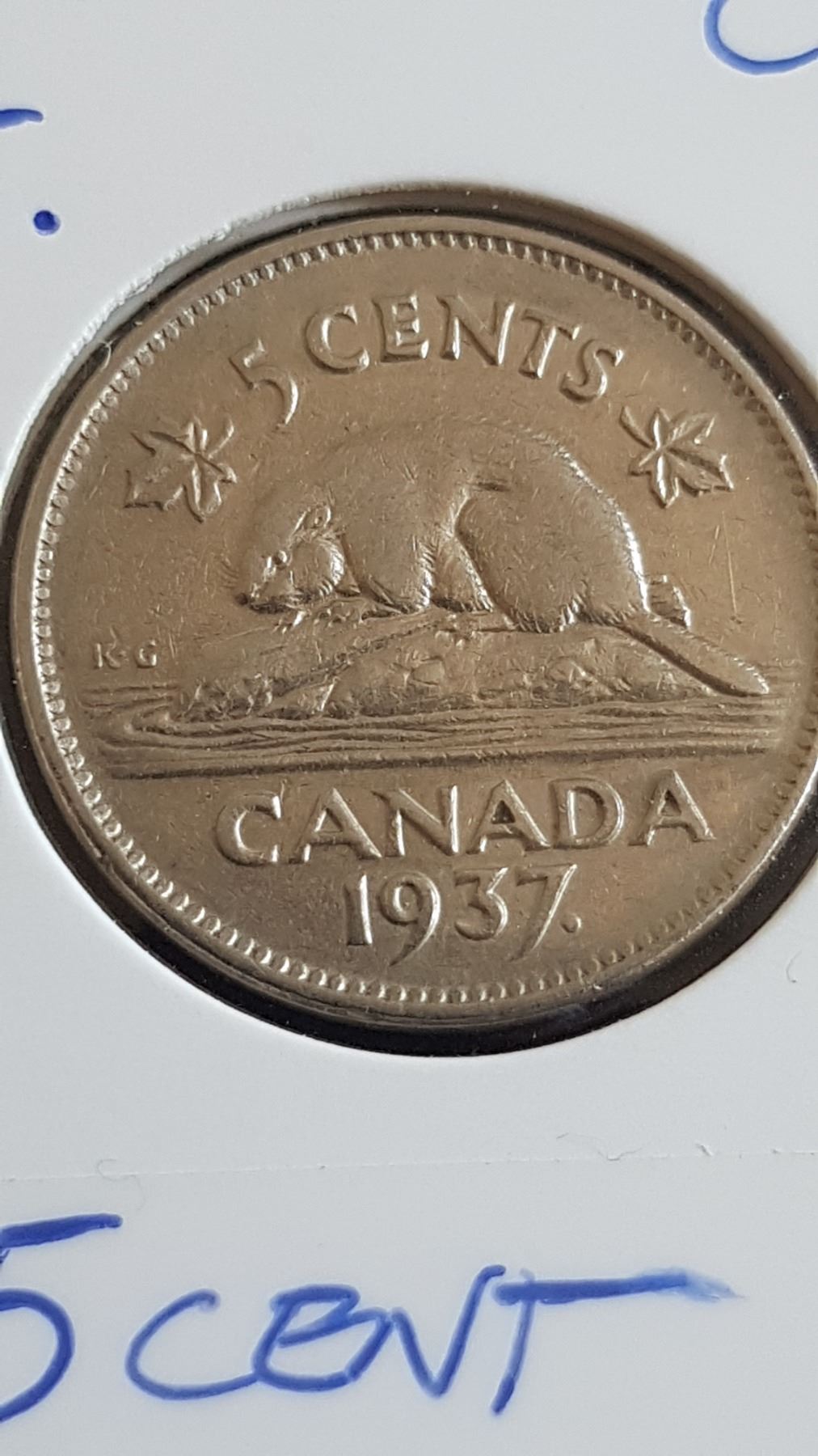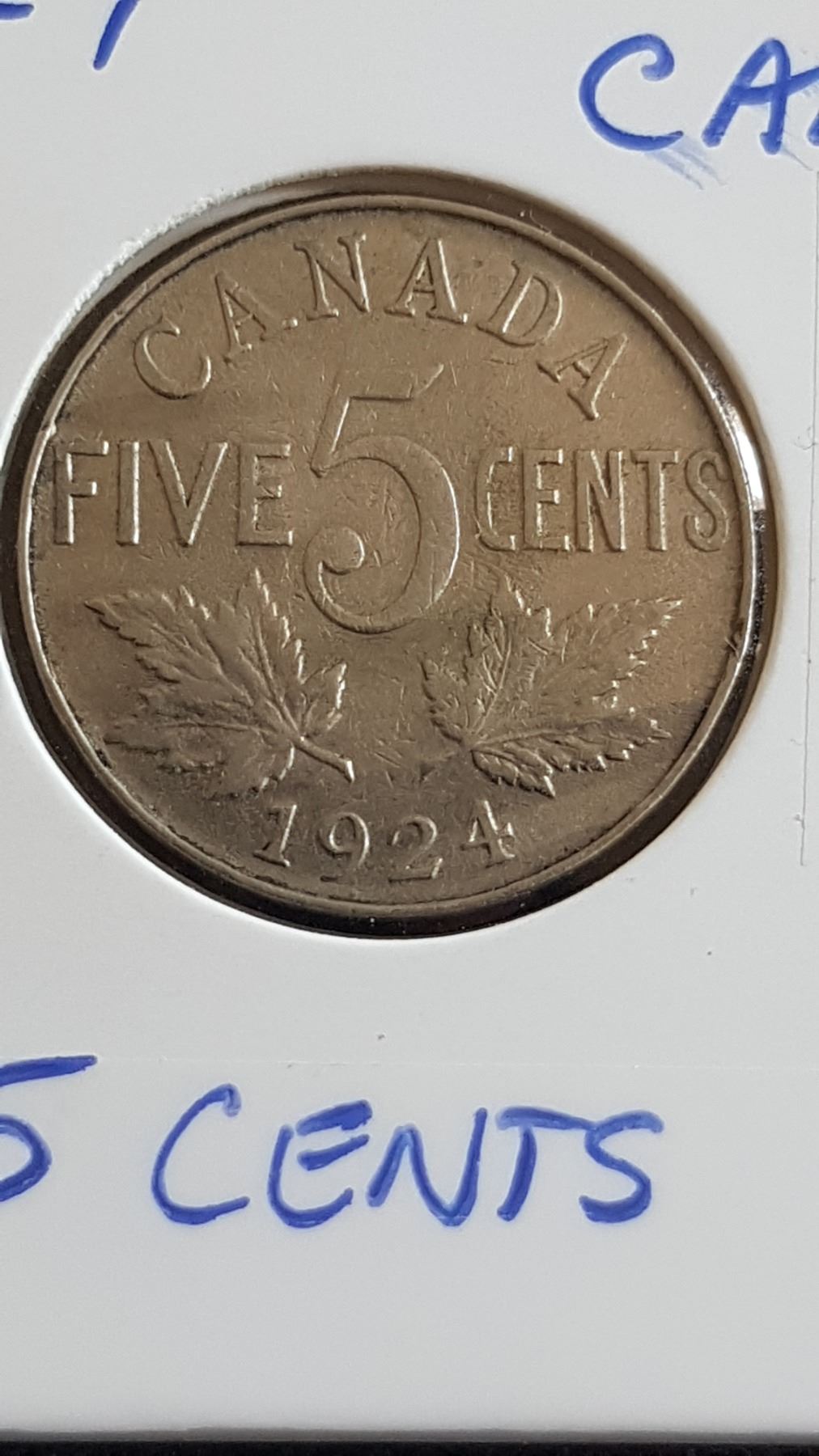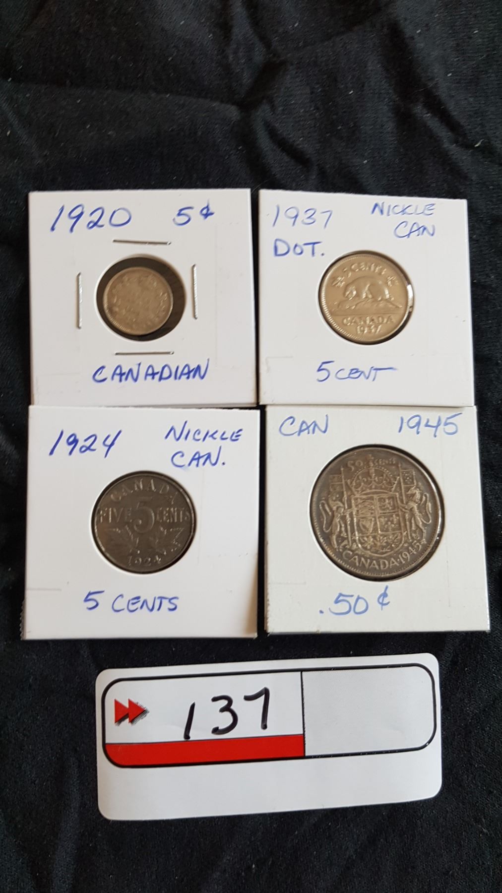 4 Misc Canadian Coins 50 cent 1945, Dot nickel 1937, Nickle 1924, Dime 1920
