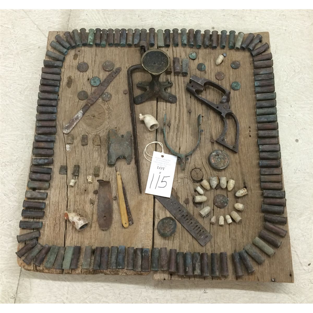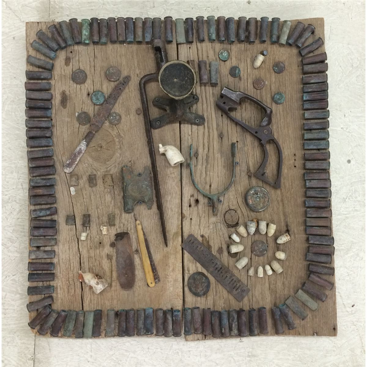 This collage measures approx. 23" wide x 24" high. There are numerous relics affixed to this collage! Please look closely at pics to see what all you will be getting. Please note if we have to ship this item we will not guarantee all relics will remain affixed in their place, you may have to re-glue them when you receive it.
