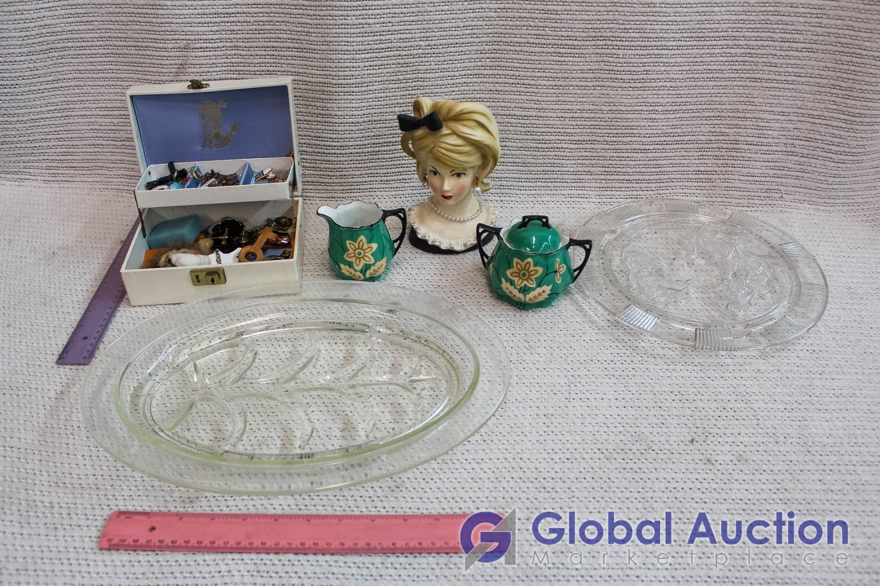 Misc Decor (Sugar and Cream Cup, Glass Trays, Jewellery)