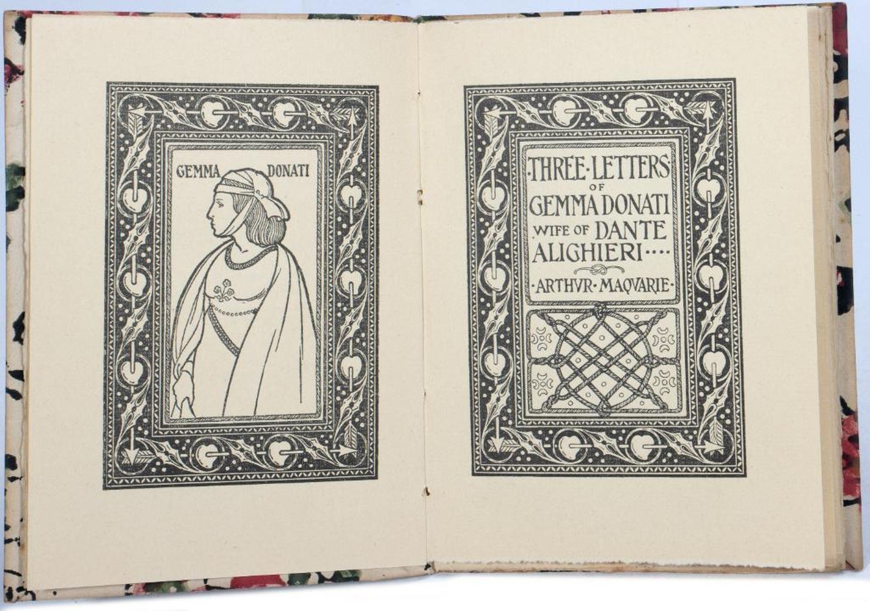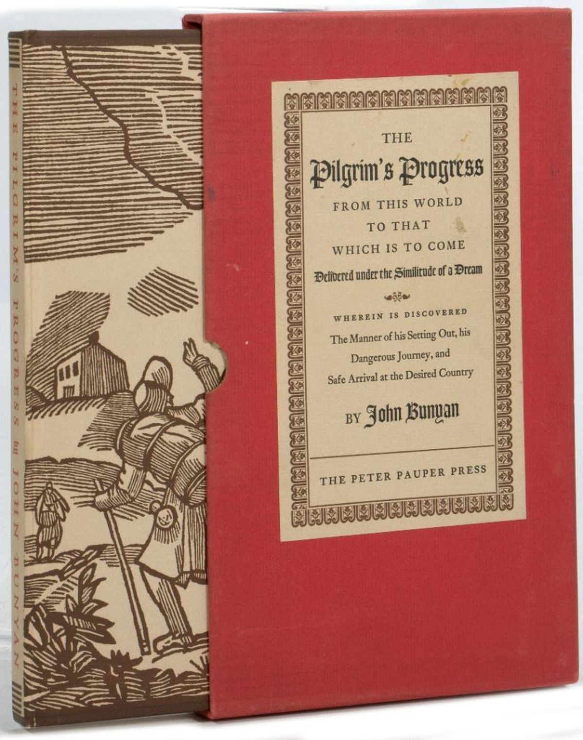 1. MAQUARIE, ARTHUR. Three Letters of Gemma Donati Wife of Dante Alighieri. Florence: Olive Press, 1920. Hand-printed paper covers, woodblock style illustrations. 2. WHITMAN, TANIA CROCKER. Poems. San Francisco: John Henry Nash, 1934. Paper cover chapbook. 3. BUNYAN, JOHN. The Pilgrim's Progress From This World to That Which is to Come Delivered under the Similitude of a Dream... Mount Vernon: The Peter Pauper Press, n.d. Woodcut style illustrations. In red slipcase with paper label. Very Good.