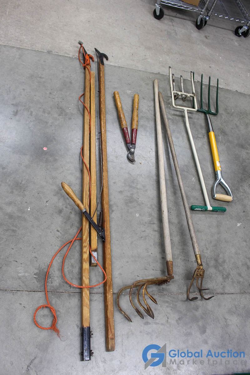 **Misc Gardening Tools - Tree Pruners, Forks, Hand Cultivators