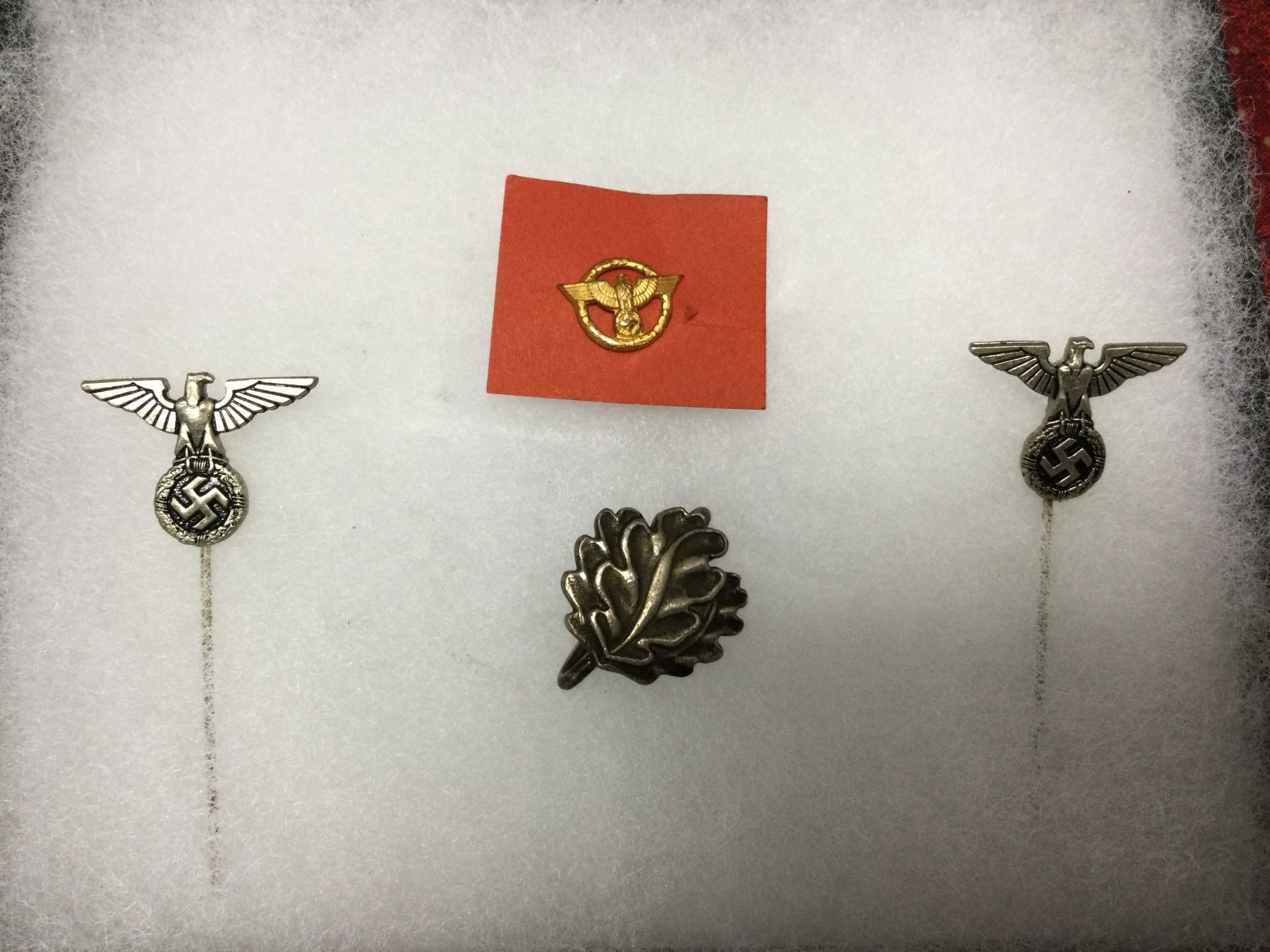 You are bidding on a great lot of German Party Pins, including one made of gold and a diamond, a great addition to your collection