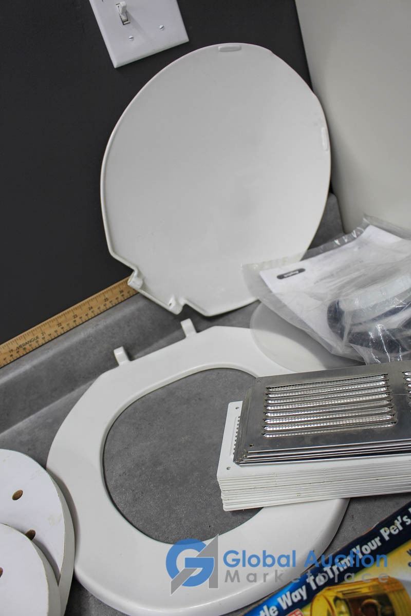 Toilet seat, towel racks, Pedi Paws, floor vents, etc.