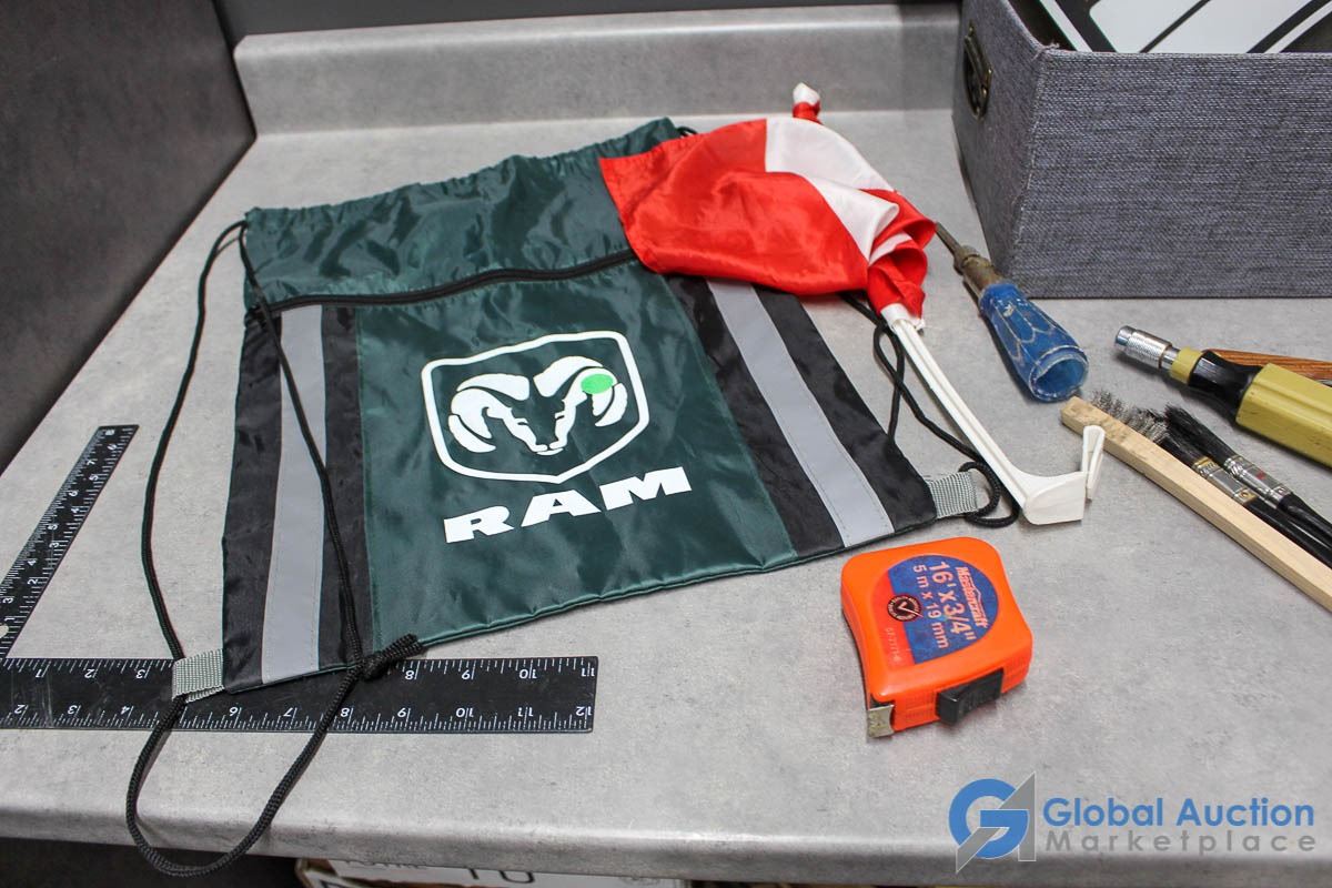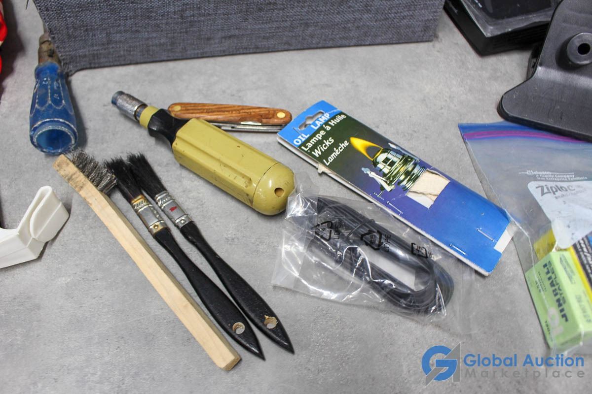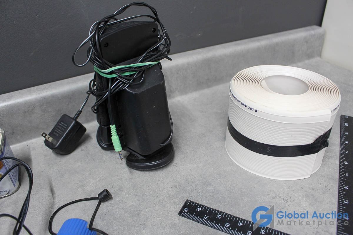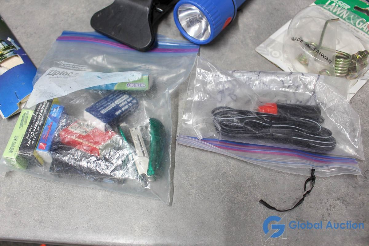 For Sale signs, flashlights, misc electronics.