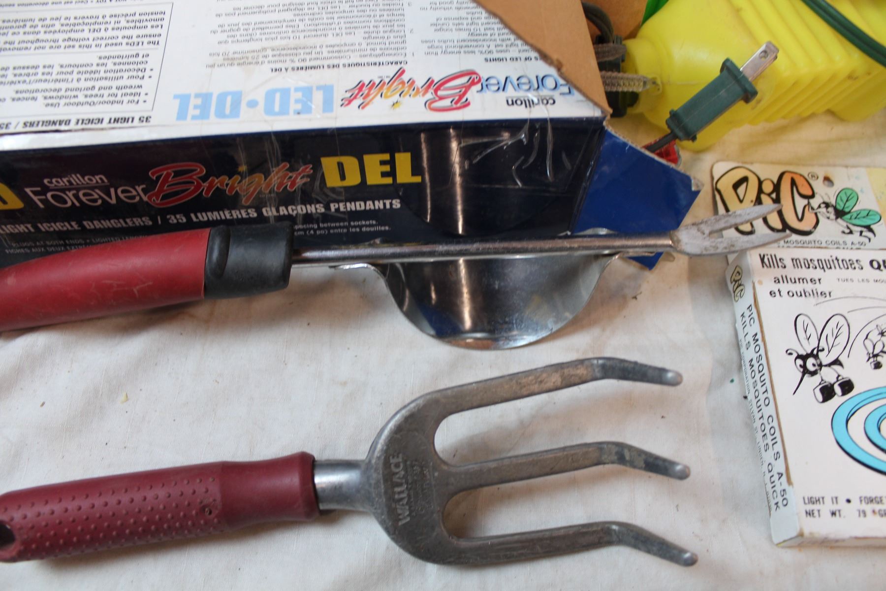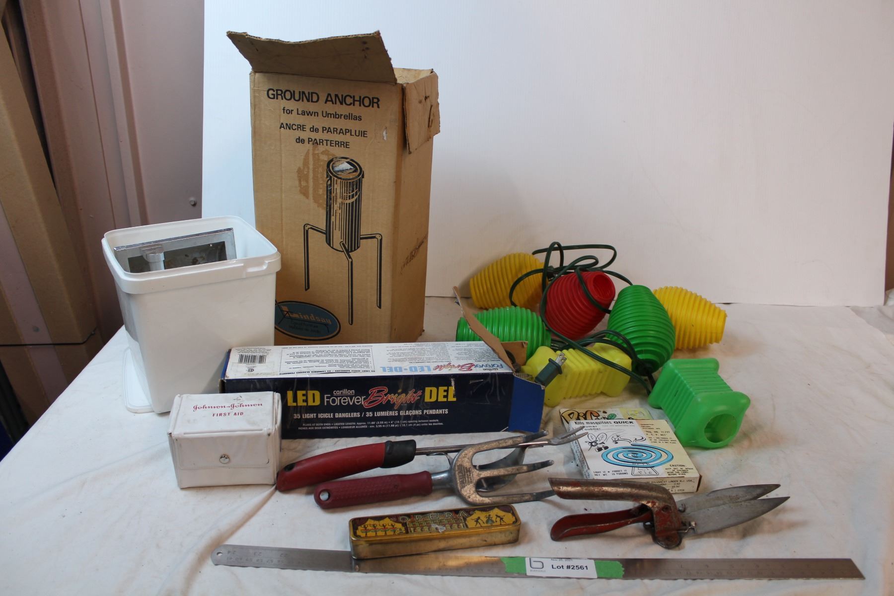 *Misc. Items; Garden tools, umbrella anchor, vintage soap