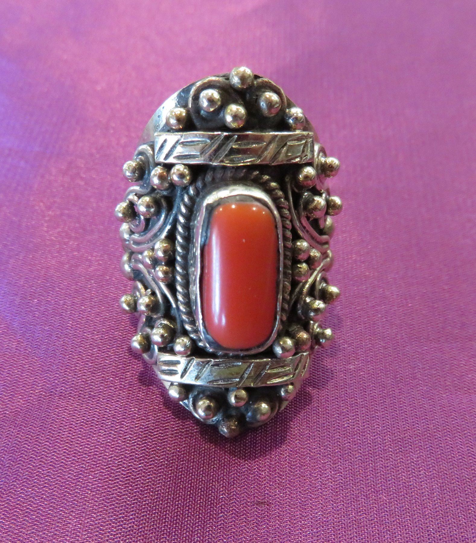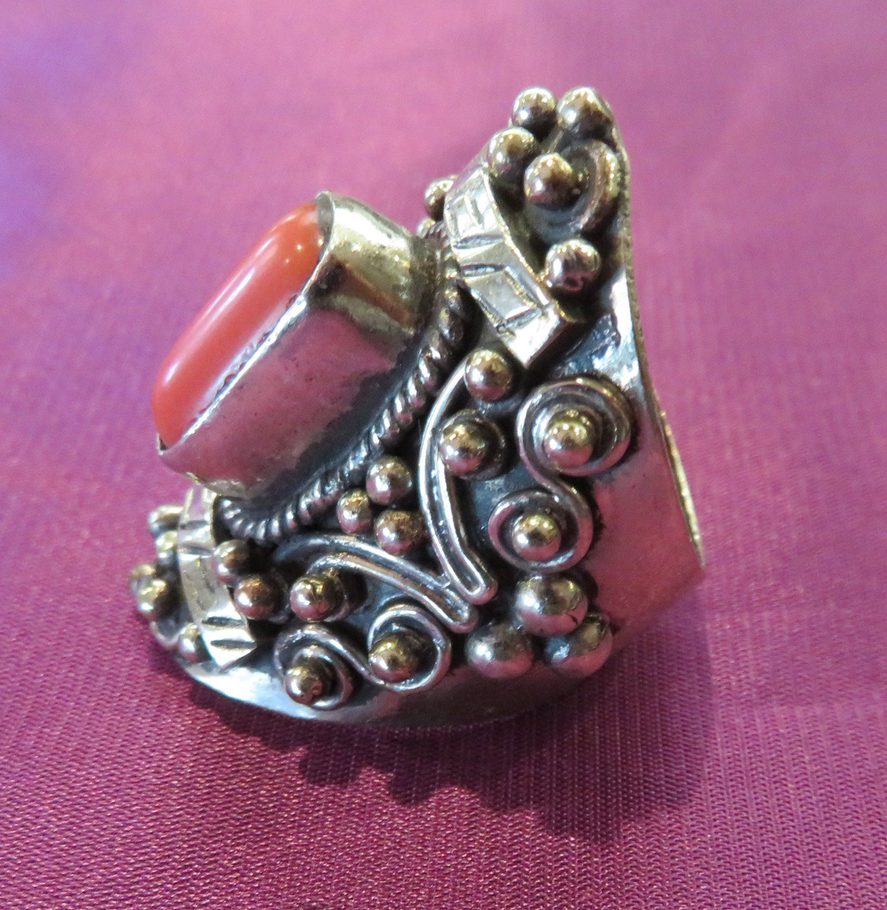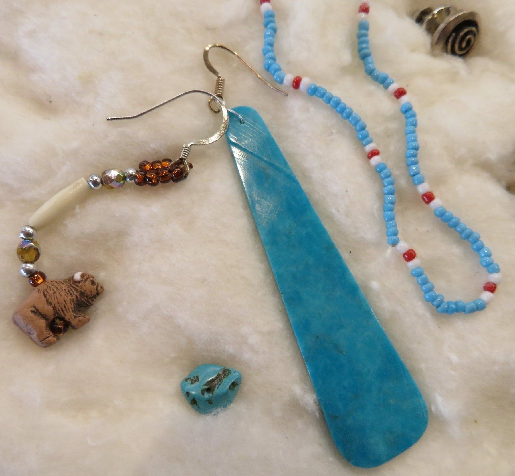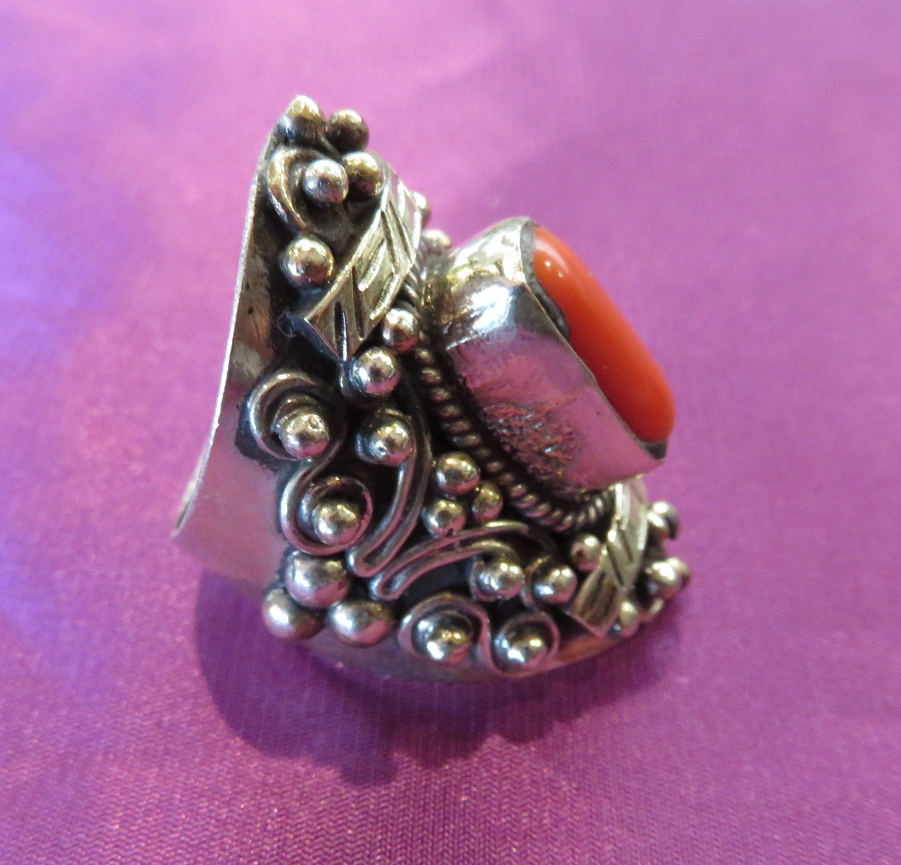 Misc Jewelry Lot, 20th century items. Made of sterling silver and coral, turquoise and glass beads, the ring is size 8 1/2 and measures 1" x 1 1/2"x 1 1/4" overall. The other items measure from 3/8" to 5" long. Southwest USA. Condition: Good, see images. Shipping: $14.50 w/insurance and signature.