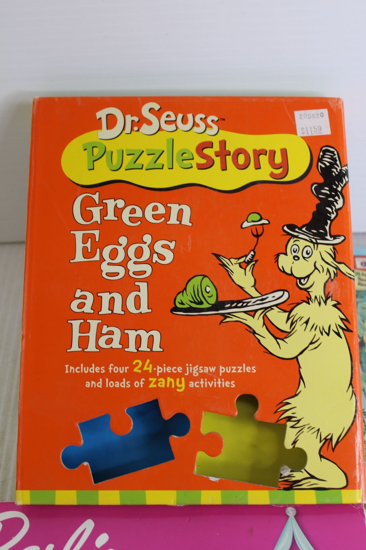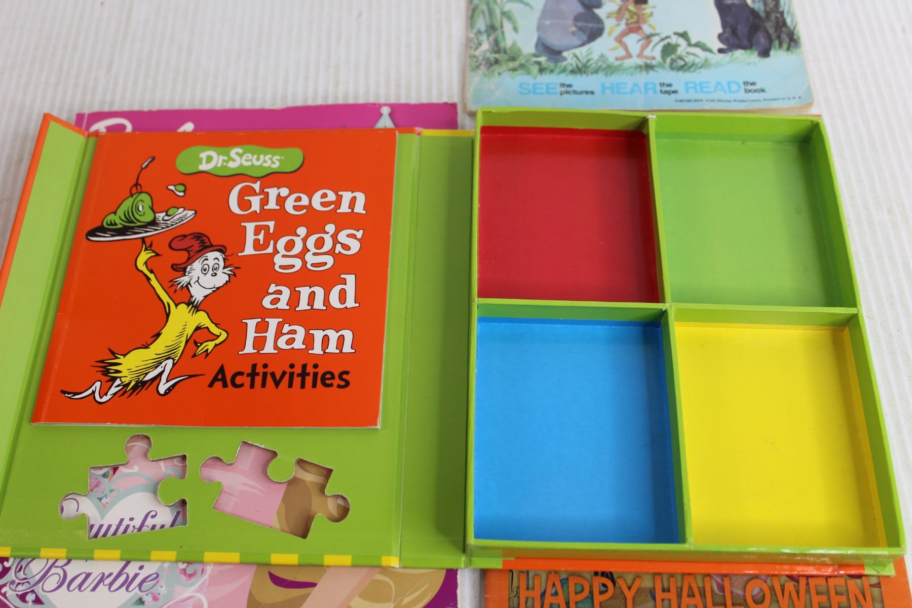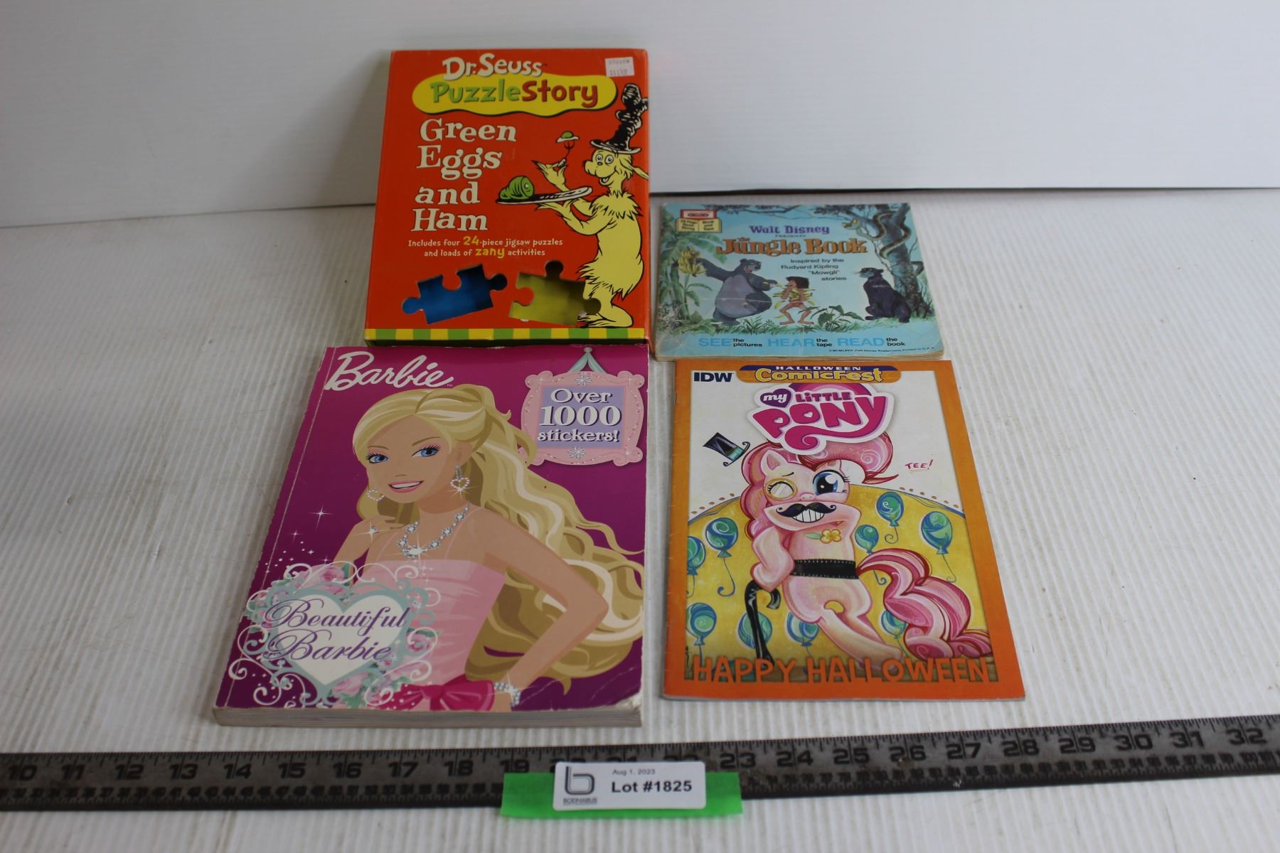 Misc. Kids Books (Dr. Suess Green Eggs and Ham Puzzle Story [No Puzzle Pieces], Barbie Colouring Book, My Little Pony Comic, Jungle Book)