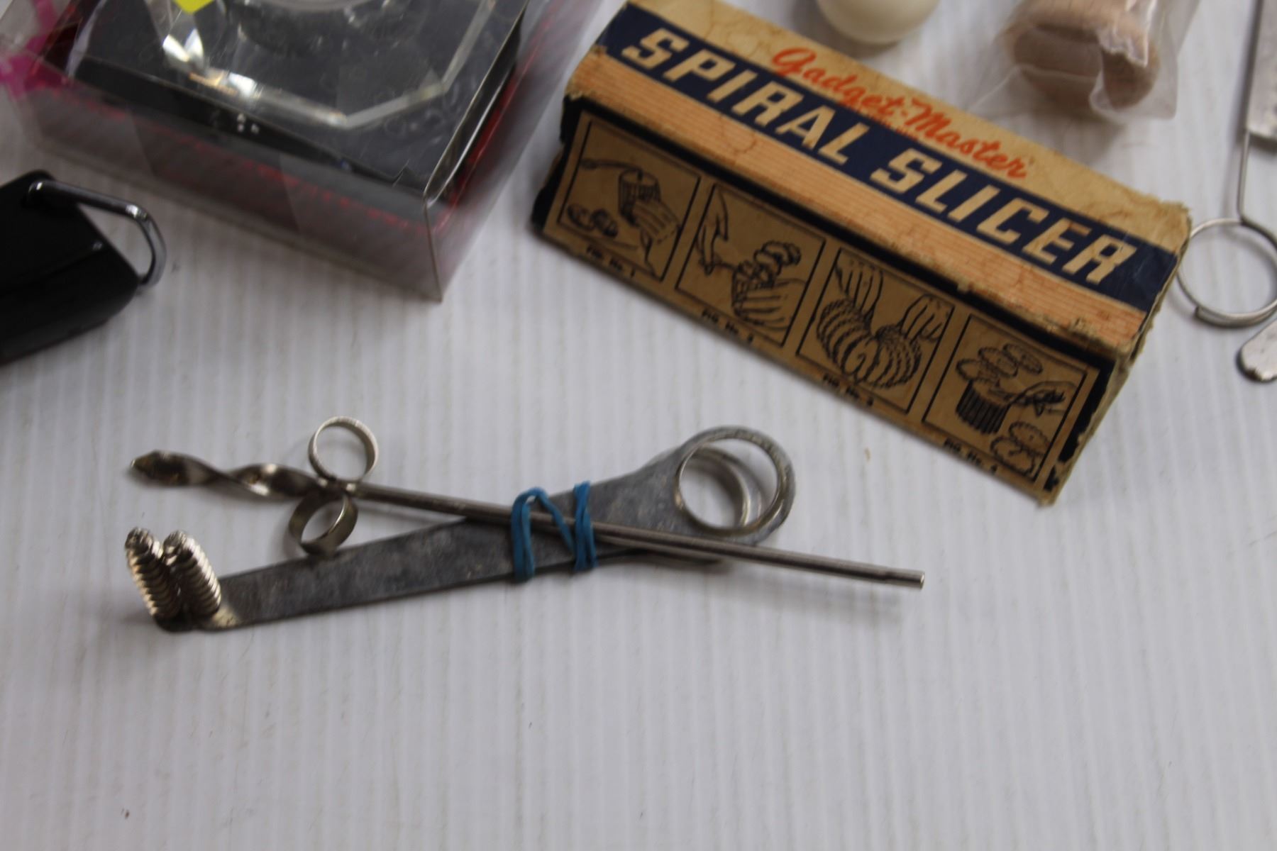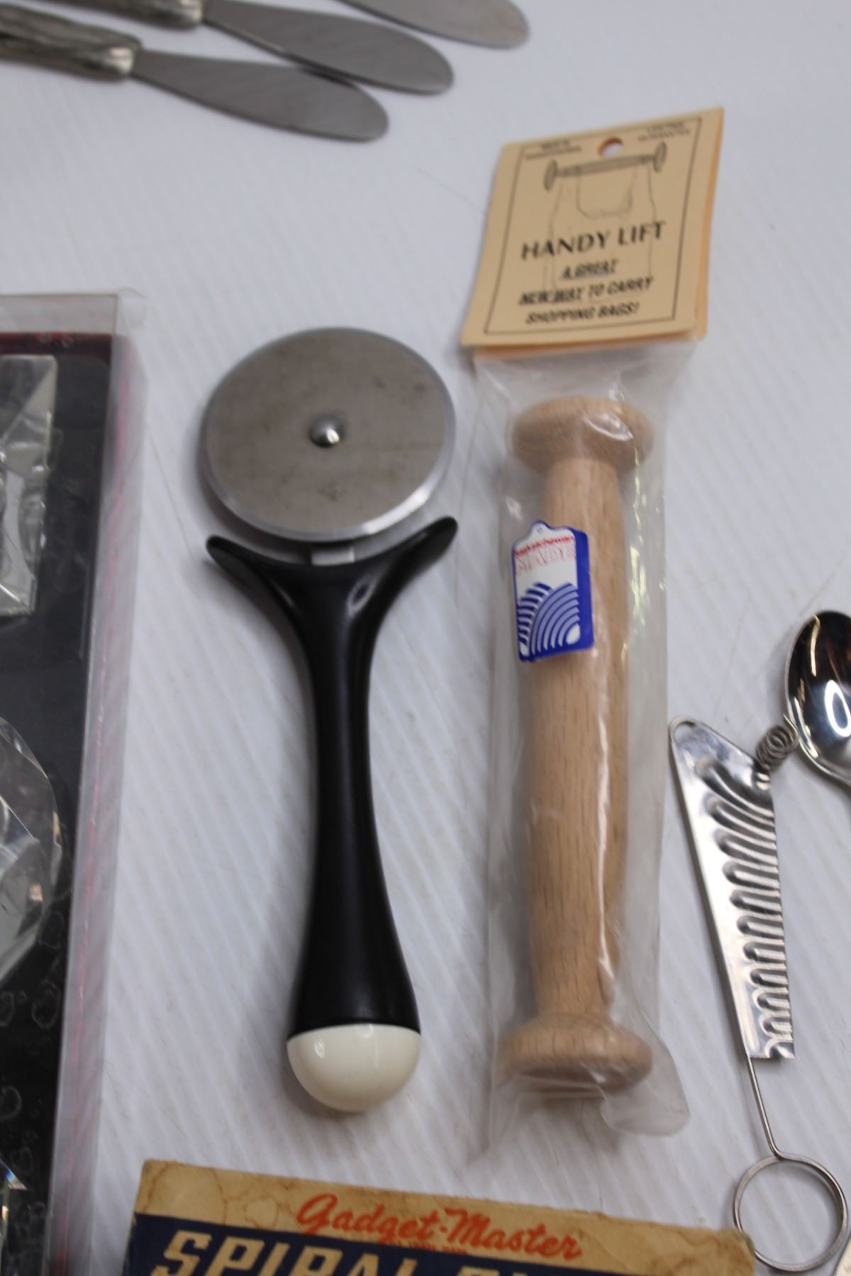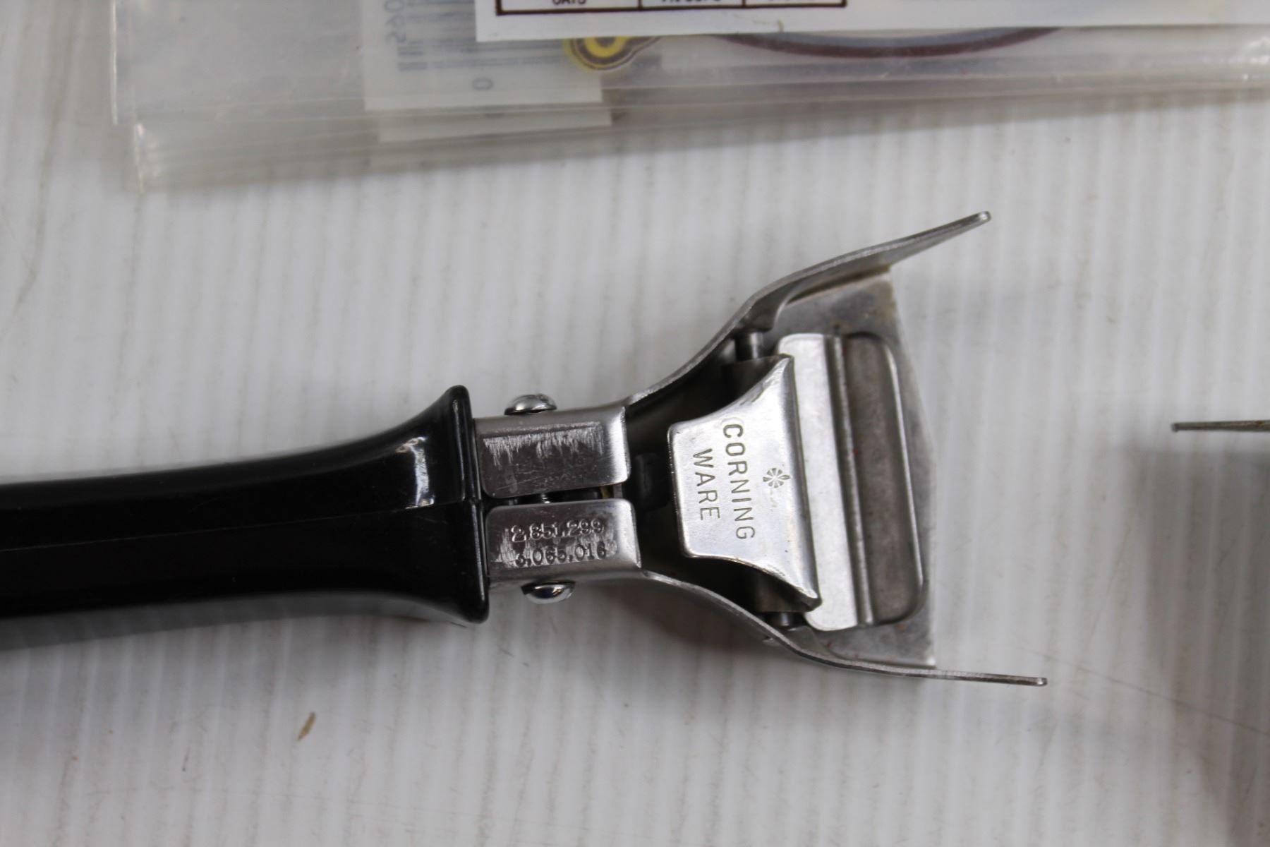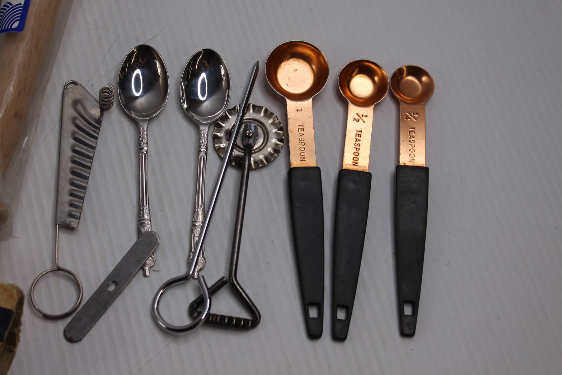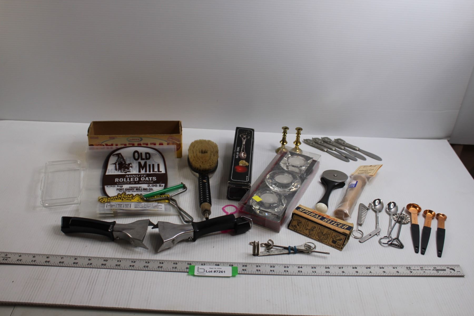 Misc. Kitchen Items - Corningware Handles, Tongs, Candles w/Holders, Pizza Cutter, Measuring Spoons etc.