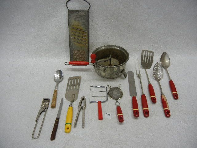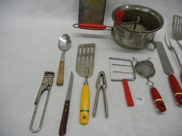 Misc. Kitchen Utensils: Sifter, Spatulas, Slotted Spoons, Nut Cracker, Grater