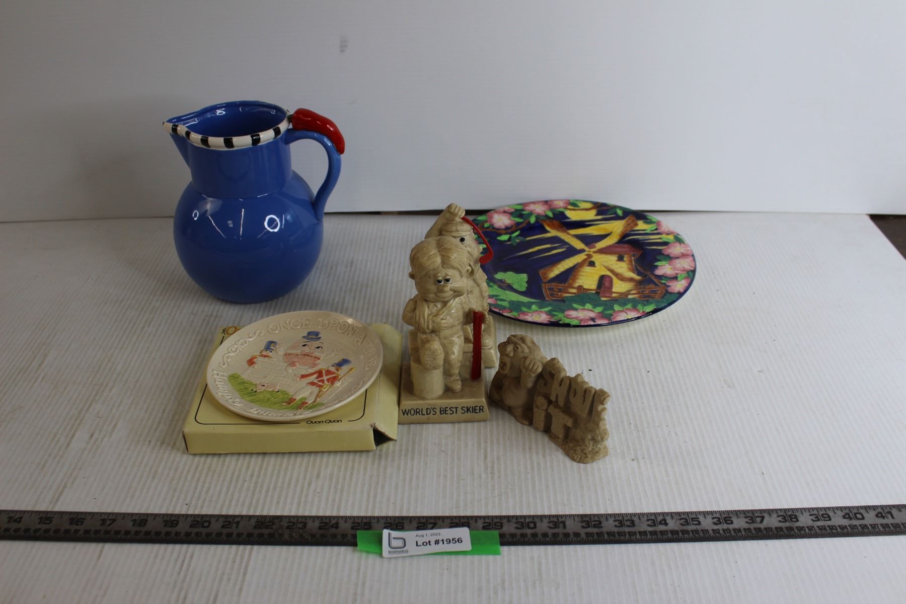 Misc. Kitchenware (Pitcher, [2] Picture Plates), Figurines