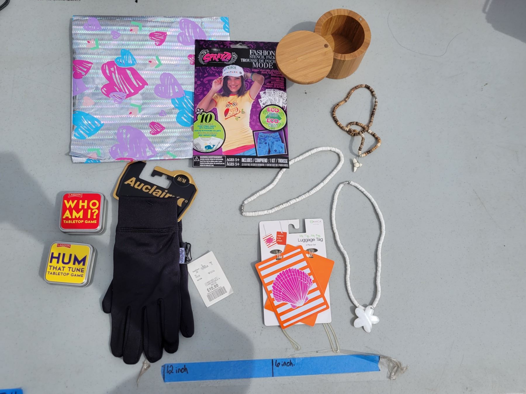 Misc Lot - 2x Games, Luggage Tag, Jewellery, Wooden Trinket Box +