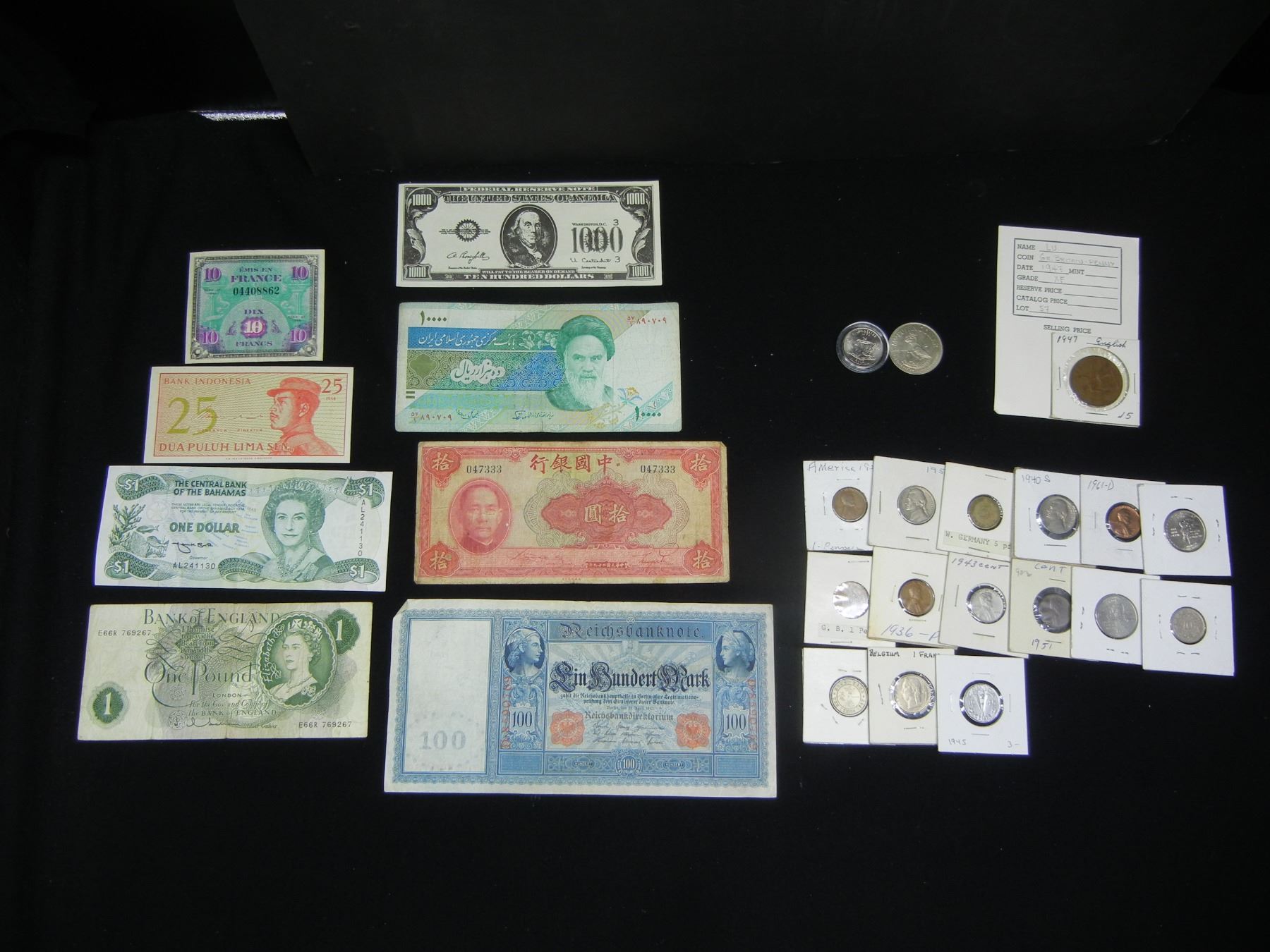 Misc. Lot: Foreign Currency, U.S. and Foreign Coins.