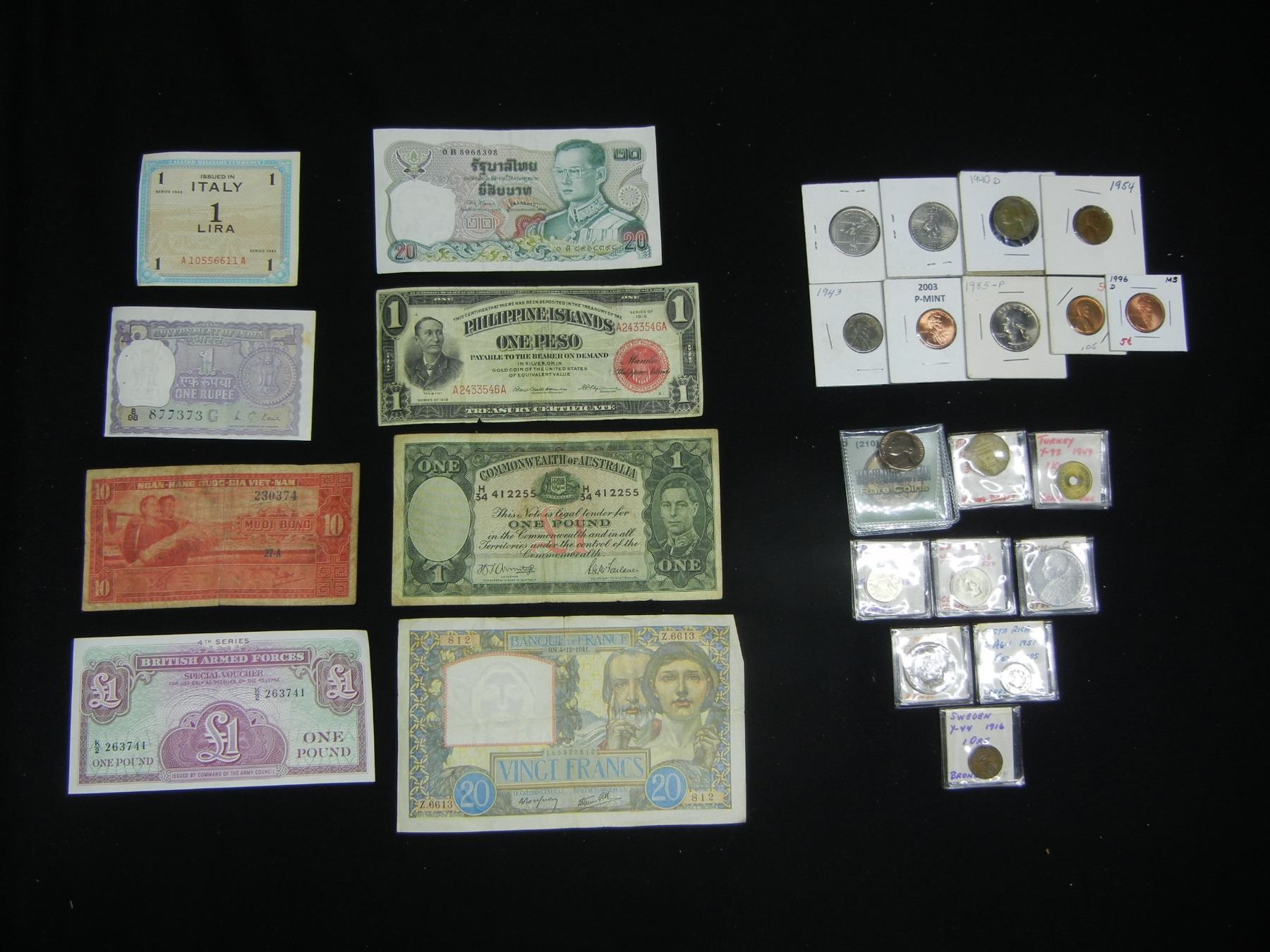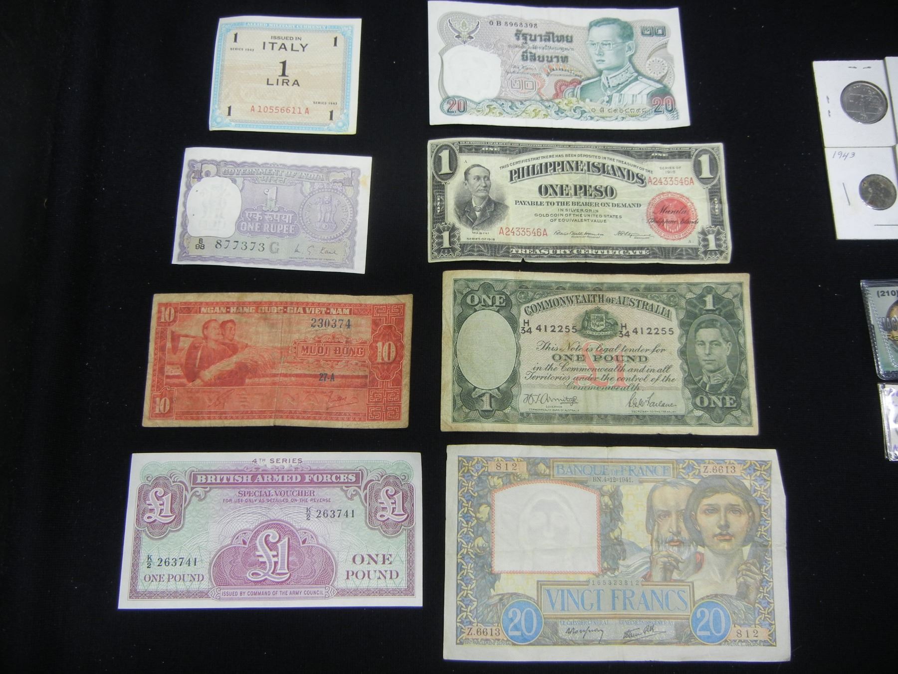 Misc. Lot: Foreign Currency, U.S. and Foreign Coins.
