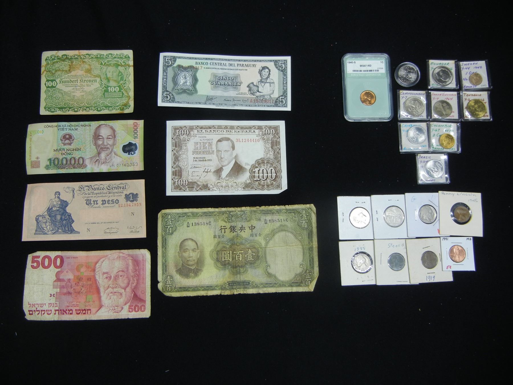 Misc. Lot: Foreign Currency, U.S. and Foreign Coins.