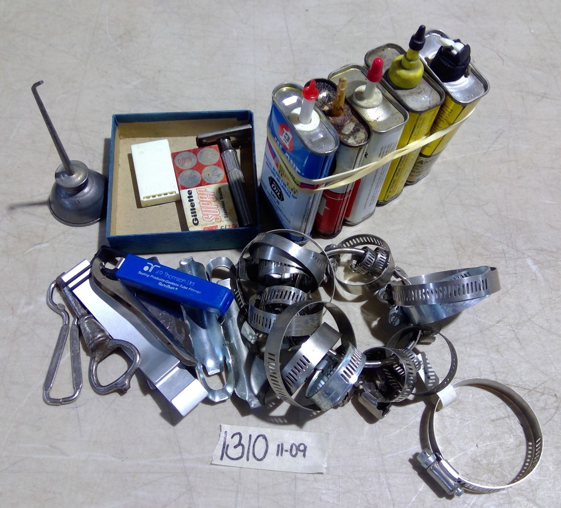 Misc.Lot; Hose Clamps Adjustable, Bottle Openers, Gillette Rasor and Different Oil