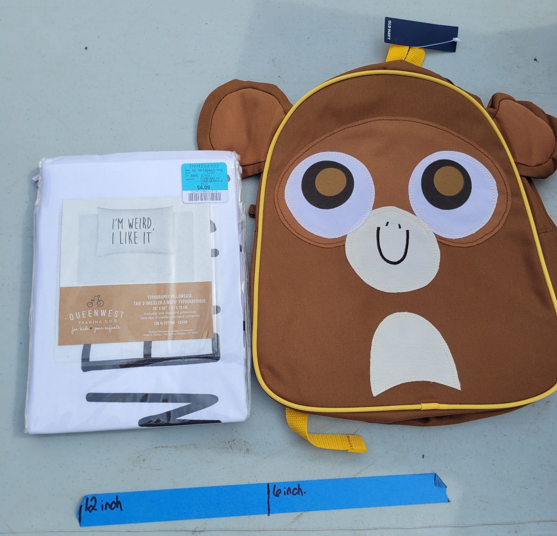 Misc Lot - Monkey Backpack + I'm Weird I Like It Pillow Case