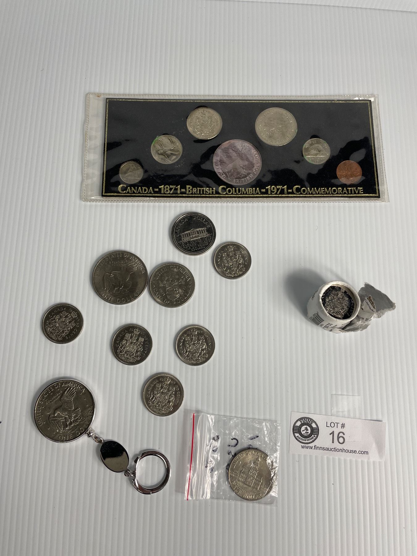 Misc Lot Of US & Canadian 1/2 Dollars & Dollars And 1871-1967 BC Canadian Coin Set