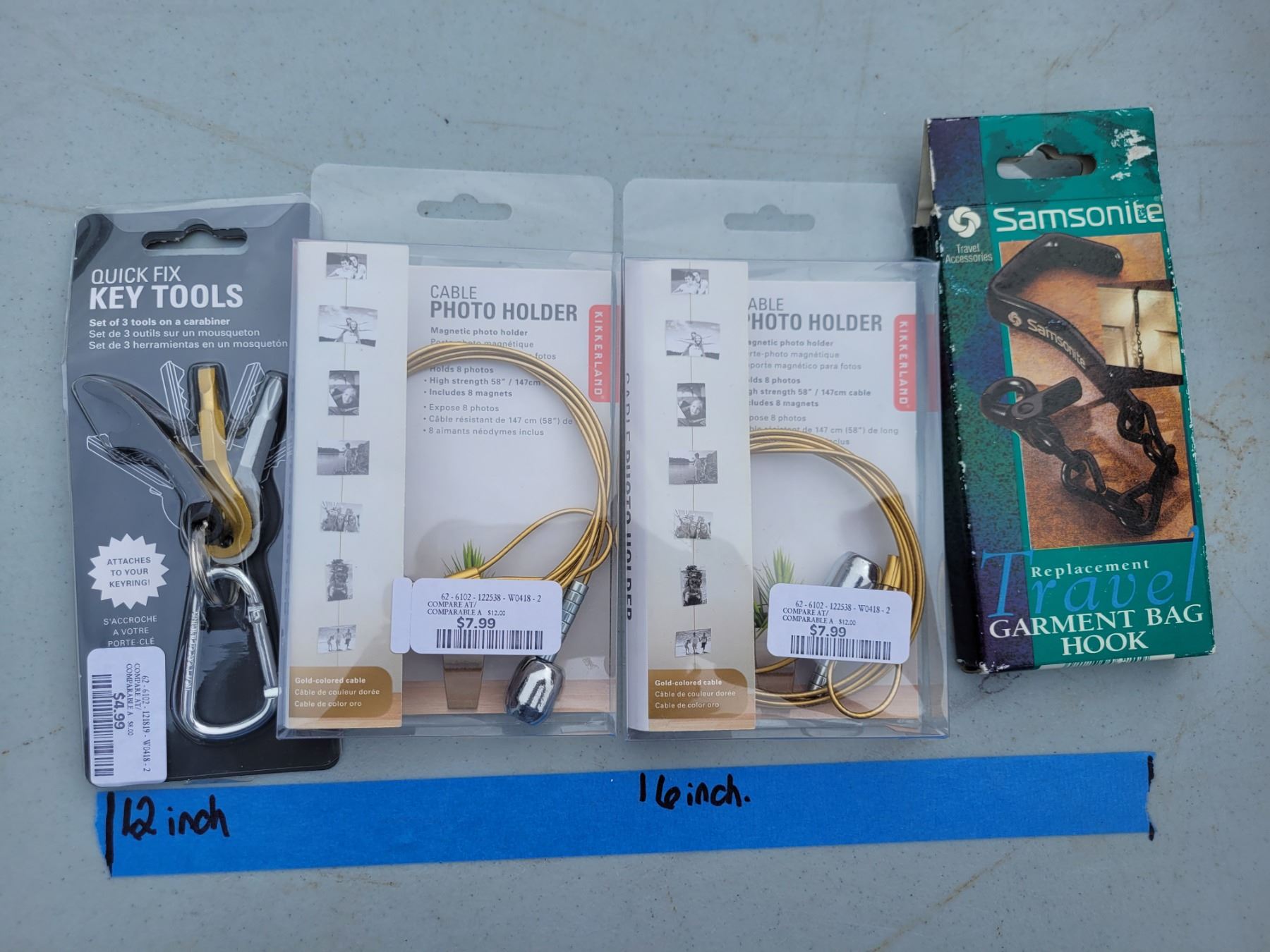 Misc Lot - Quick Fix Key Tools, 2x Cable Photo Holder, Samsonite Garment Bag Hook