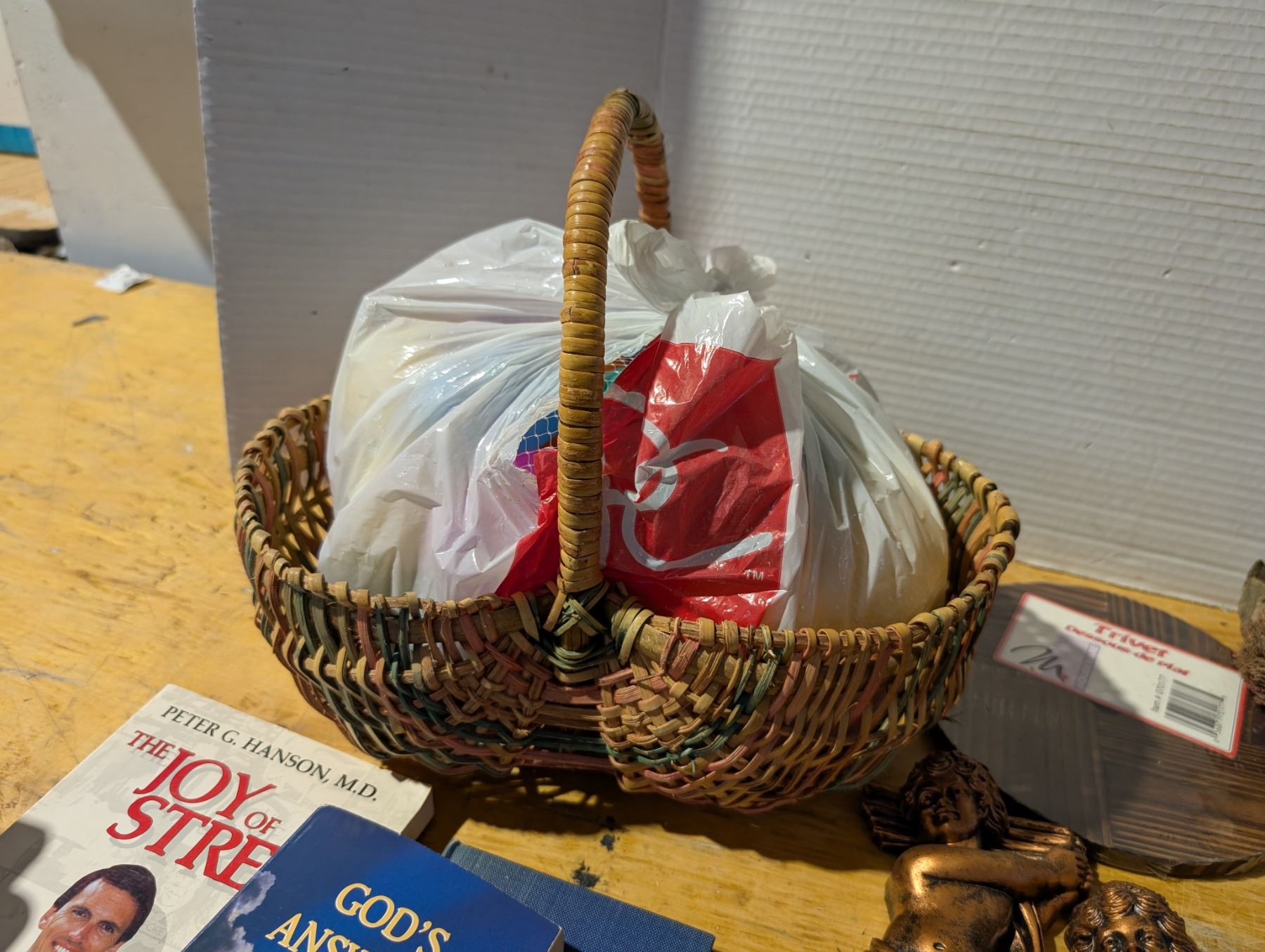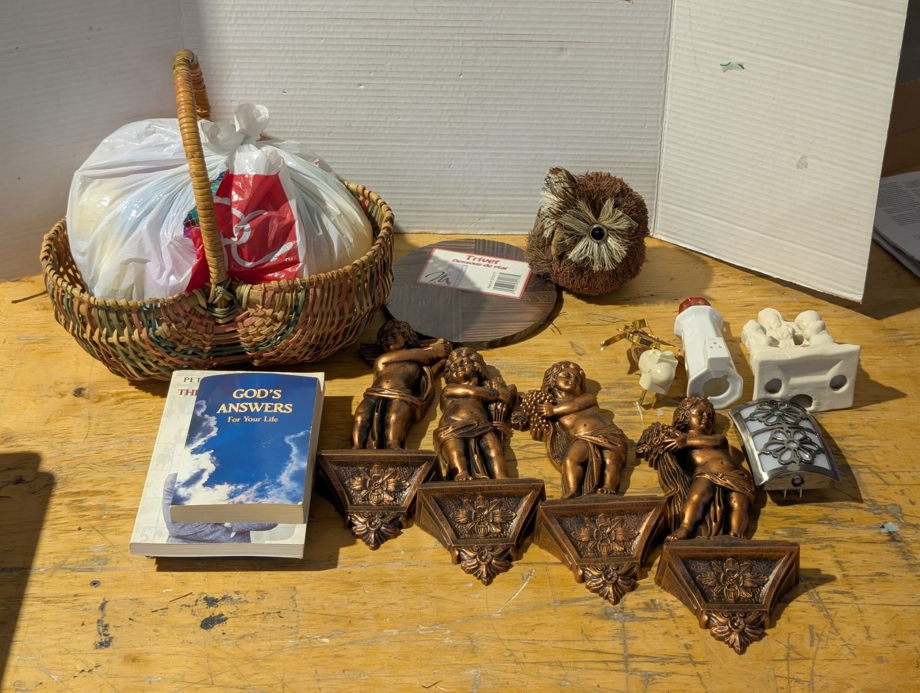 Misc. Lot (Wall Decor, Basket, Plastic Eggs, Christian Books, and etc.)