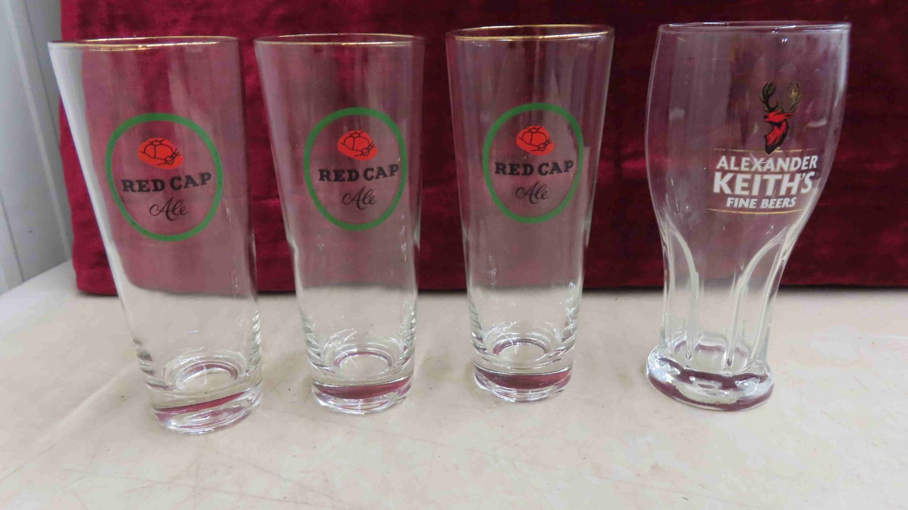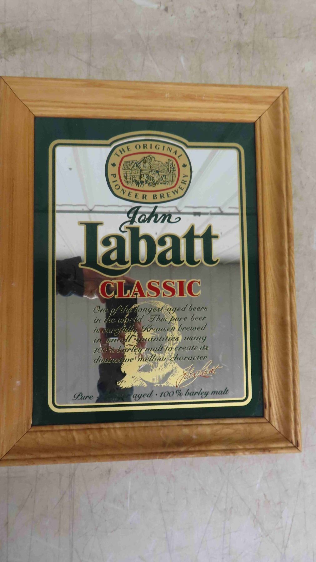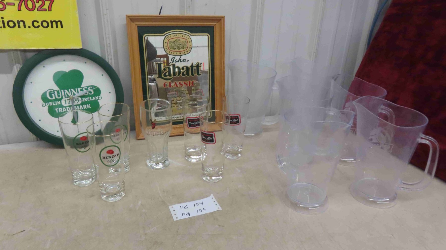 Misc. Lot of Breweriana Items - Glassware, Jugs, Mirror, Clock, 6 Fort Garry Jugs, Guinness Clock, 3 Carlings Black Label, 3 Red Cap Ale Glassware, John Labatt Classic Mirror 11" x 14"