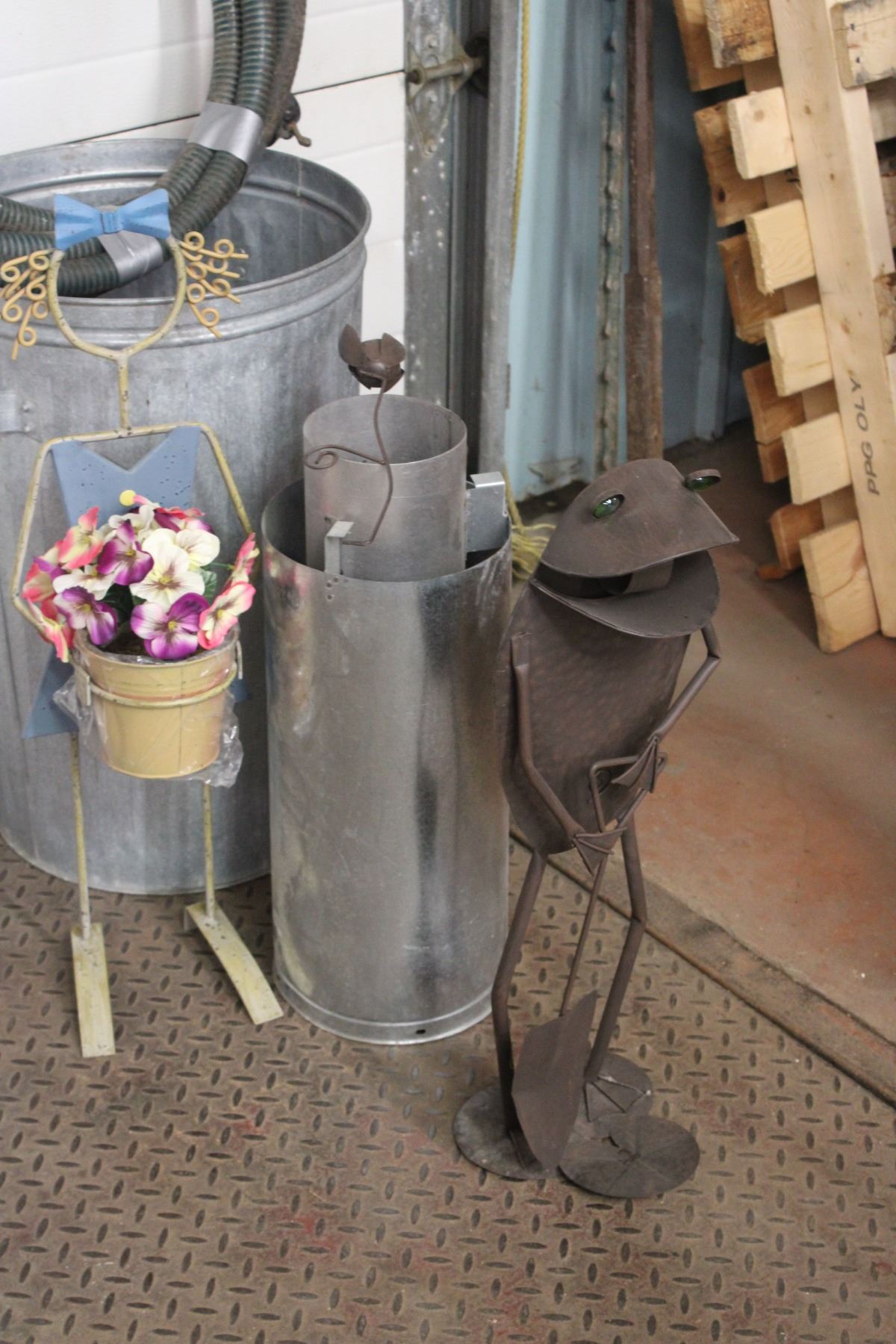 Misc Lot of Chimney Stand Frog Hose Trash Can