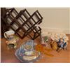 Includes: collapsible wine rack, decorative salt and pepper shaker set, Hawaii souvenir mug, lemon squeezer, decorative pieces, and table cloth set w/ 4 x matching napkins.